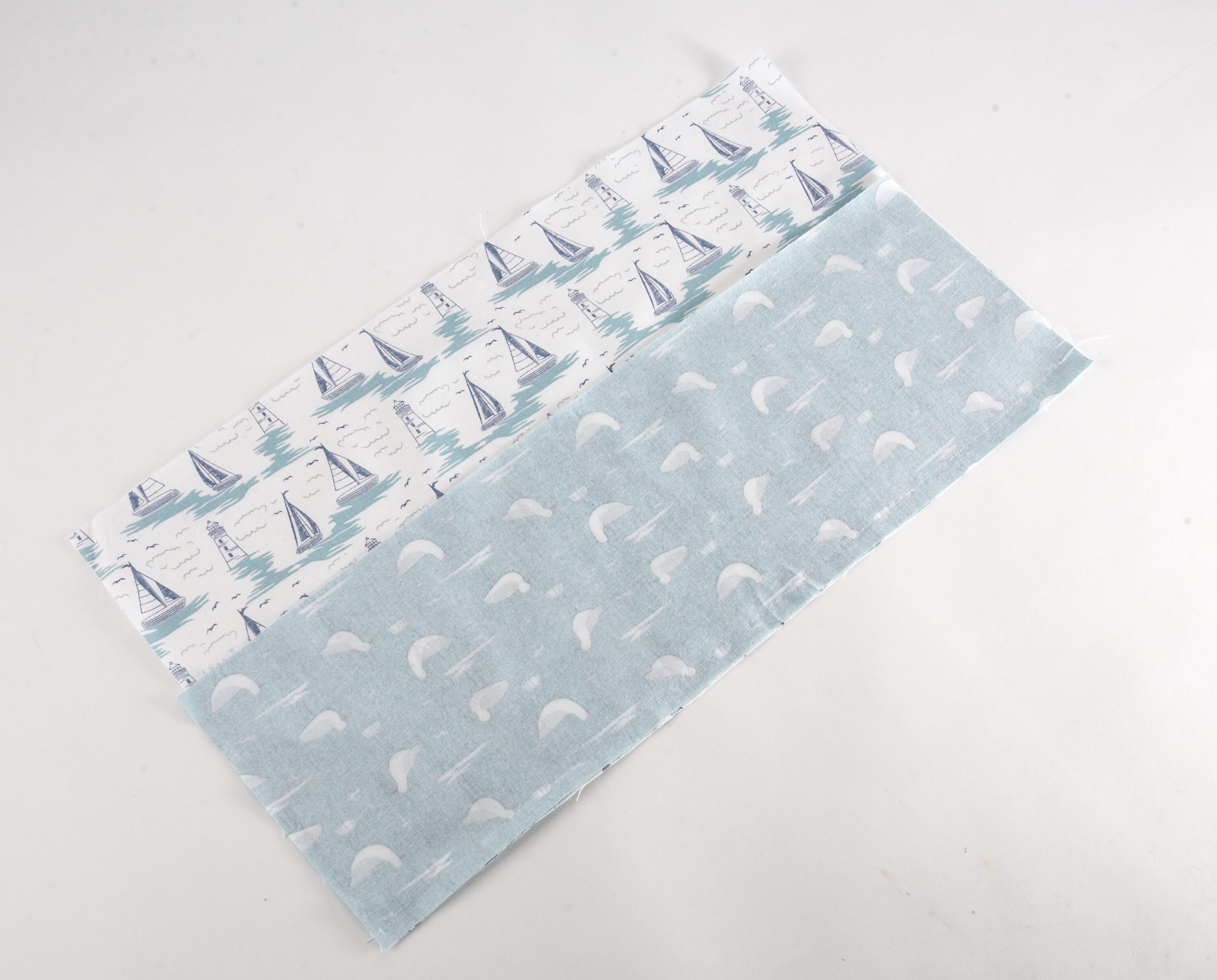 2. Sew the second smaller strip to the top of the bigger right sides together. Open and press.