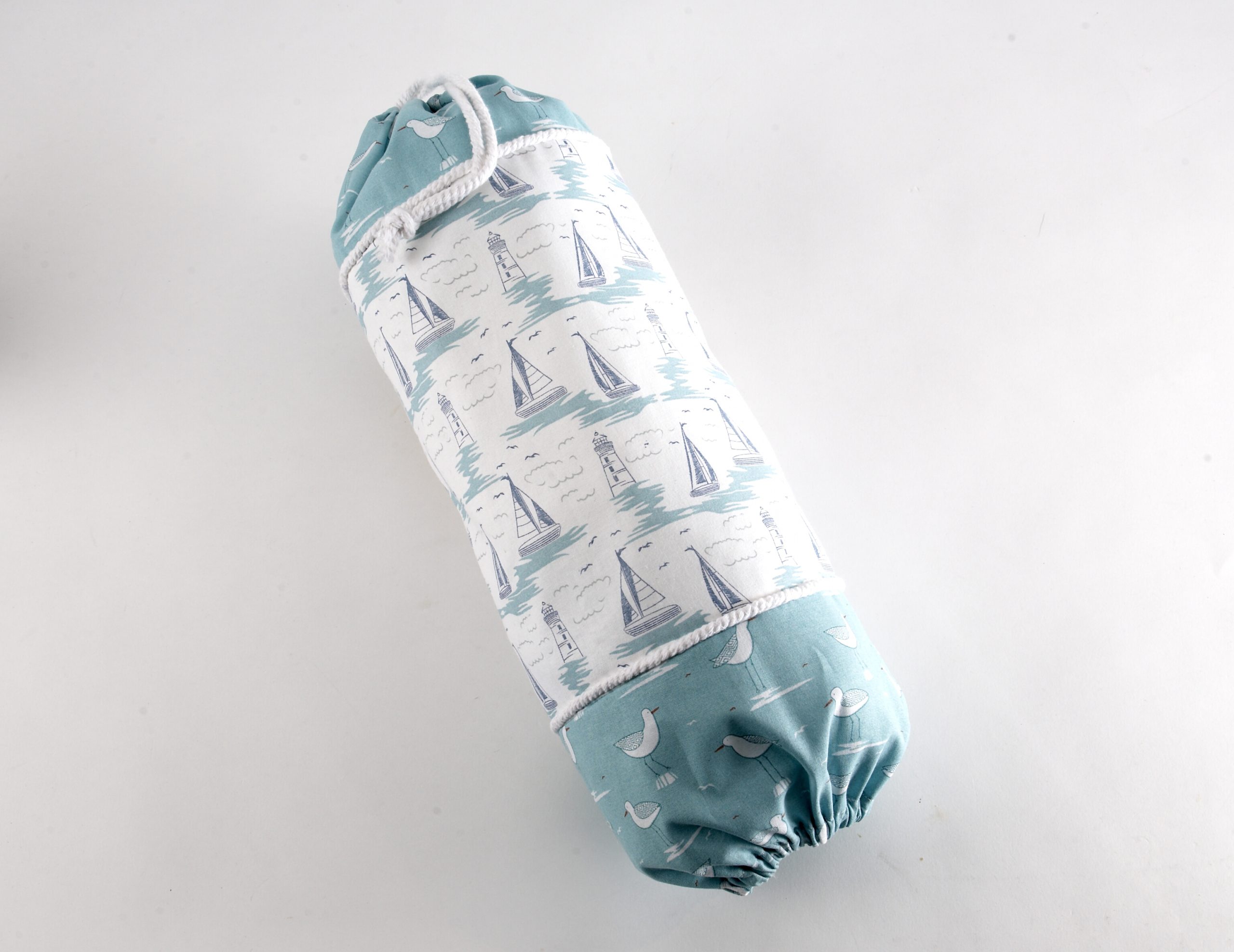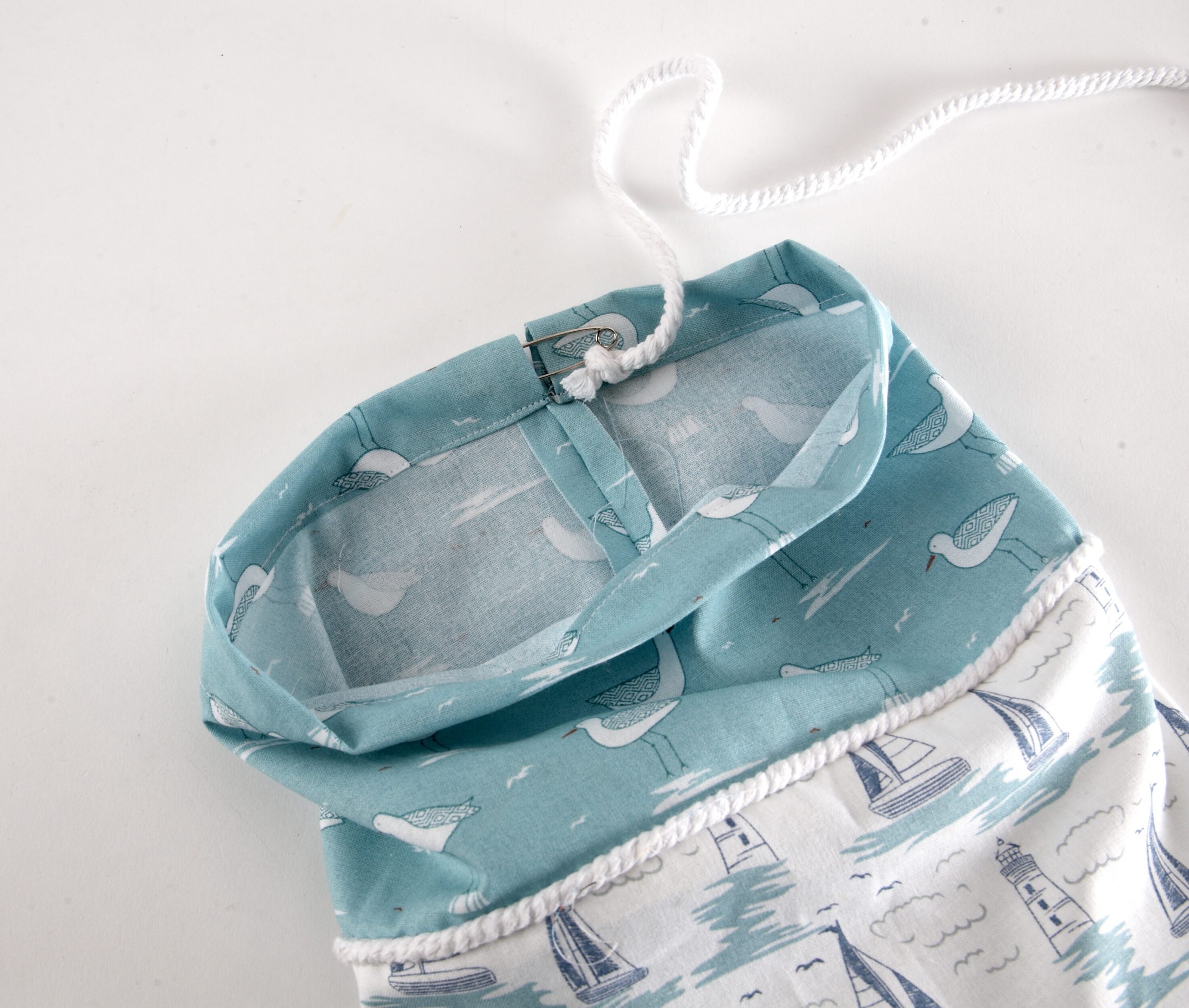A bag dispenser is perfect for added space saving storage of your plastic carrier bags helping you organise your kitchen cupboards. This dispenser uses two different prints and rope trim.