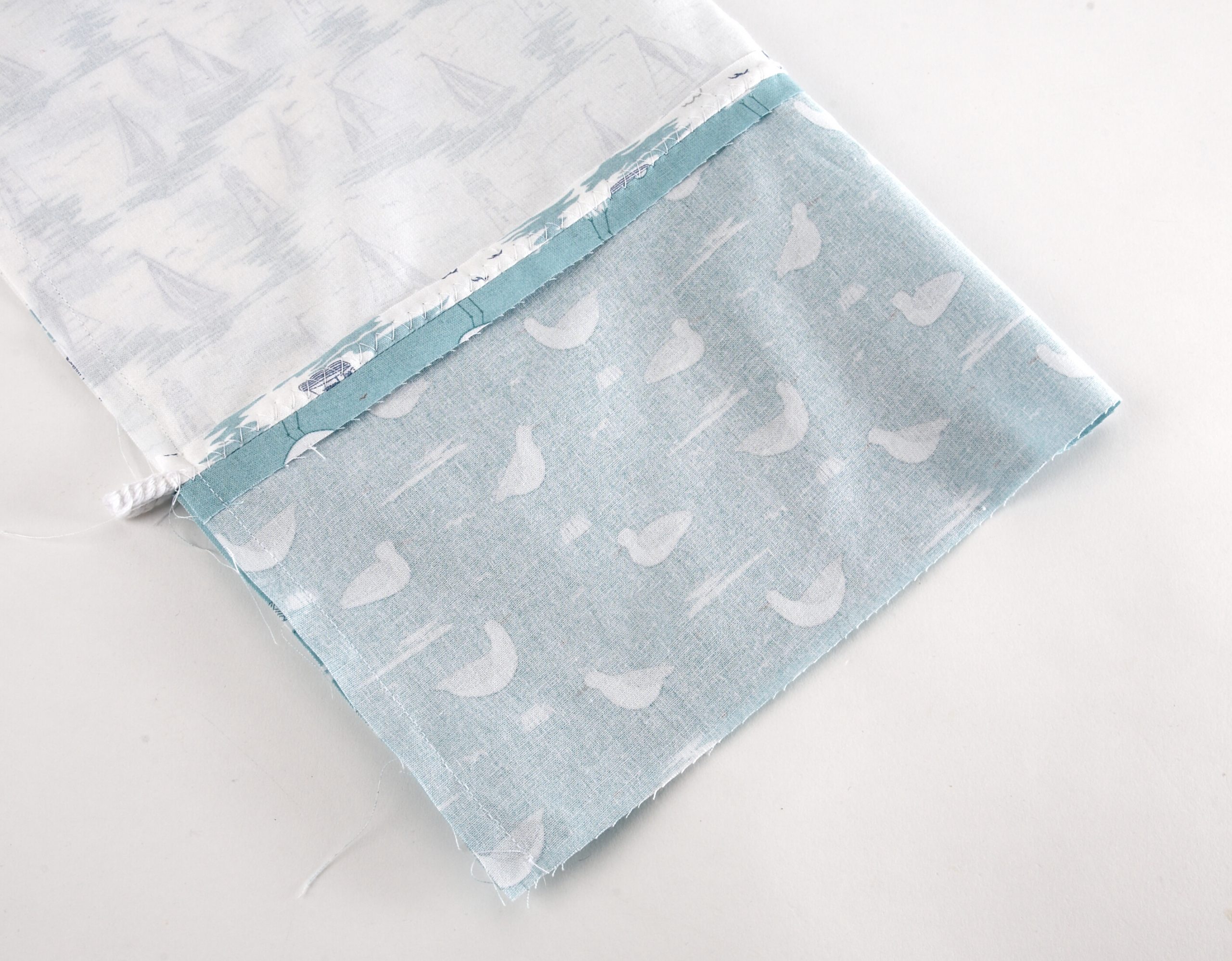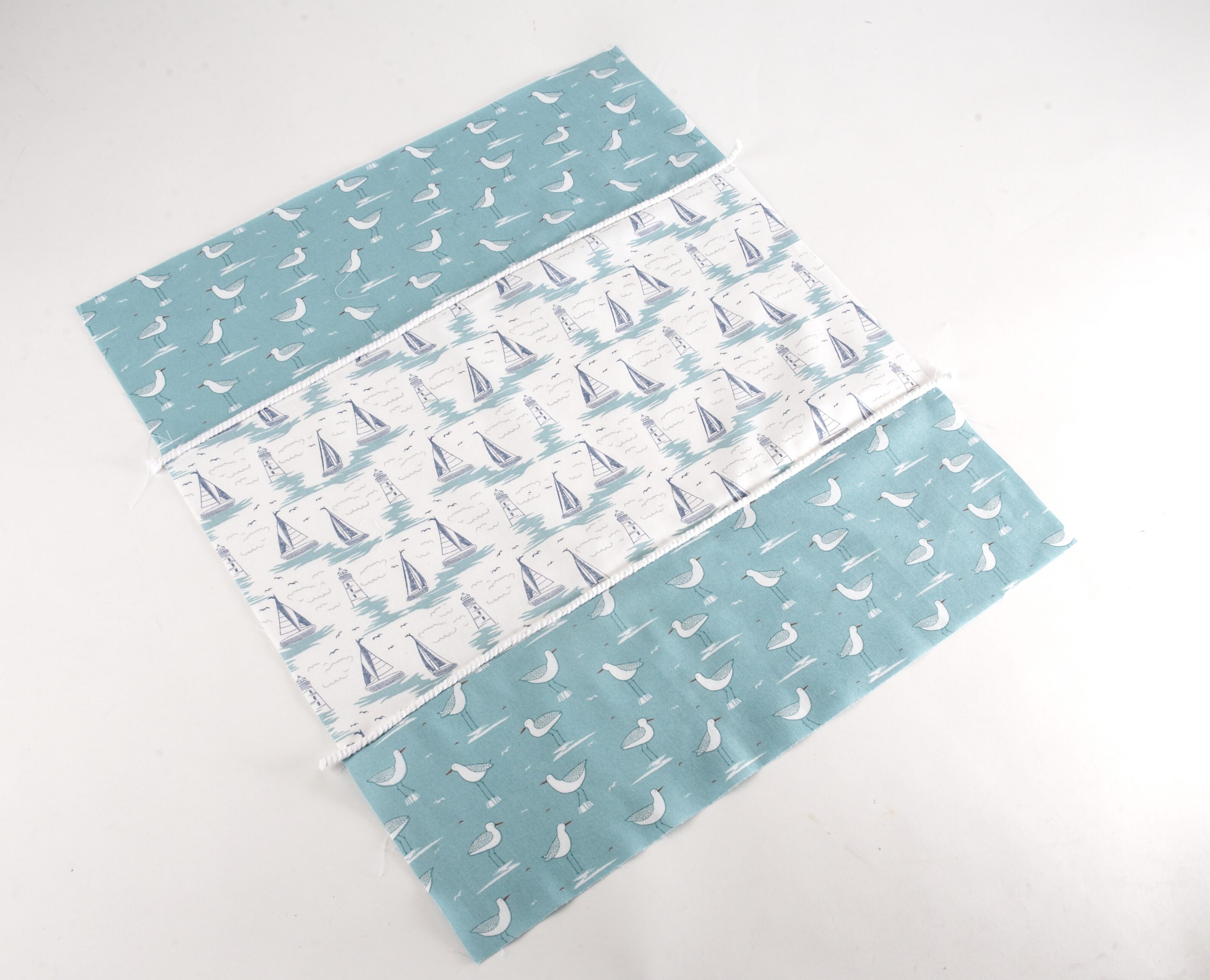 4. Fold the fabric panel in half with right sides width ways and sew. Trim back any extra cord.