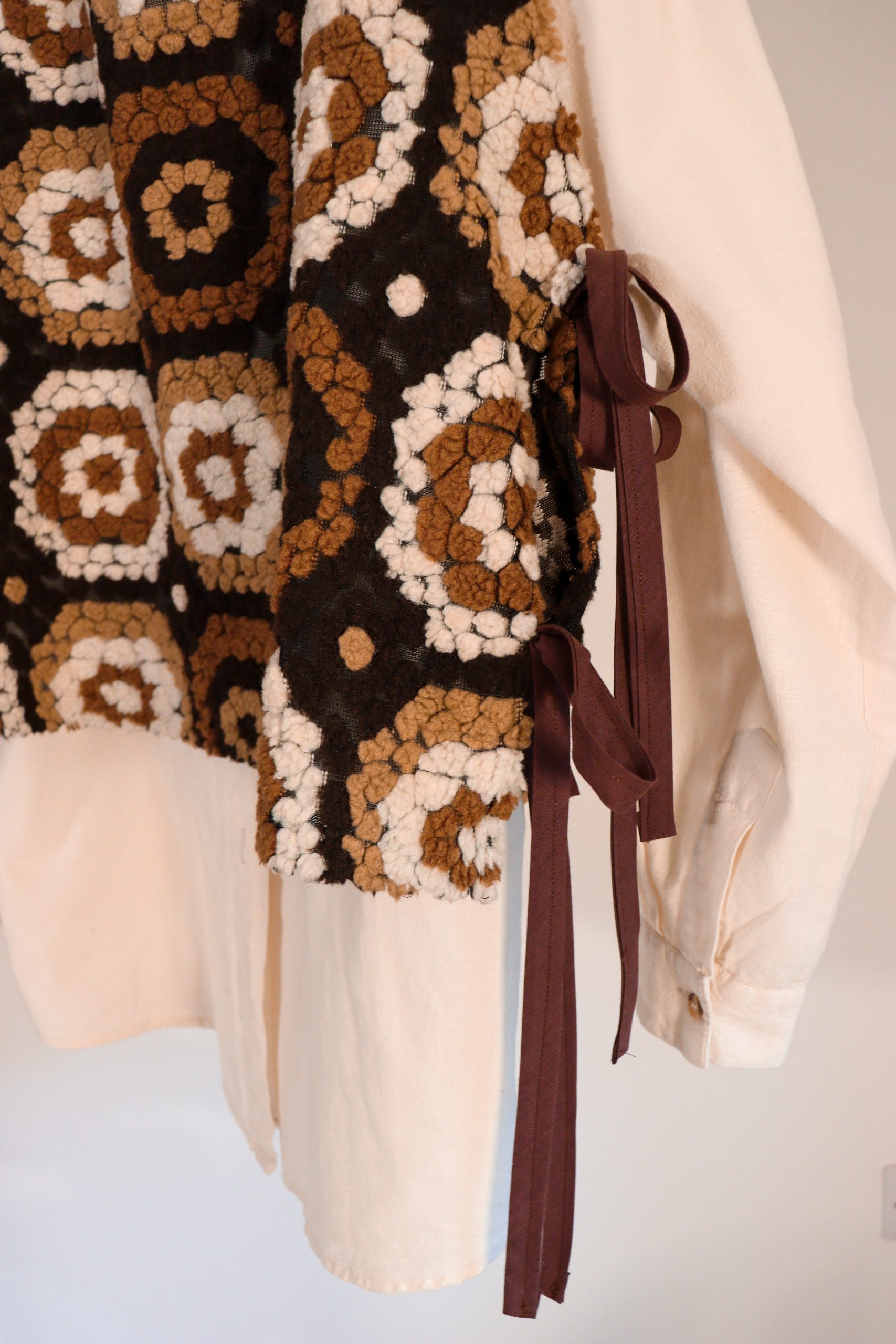 How fun is this knit fabric? As soon as it arrived, I knew I had to make some sort of jumper out of it! I’ve been loving the rise of crochet clothing trend over the past few years, but because I haven’t learnt how to crochet, I’ve had to admire from a far. There is something so charming about granny squares and handmade fashion and it is refreshing to see this becoming popular again in a time where fast fashion is rife!