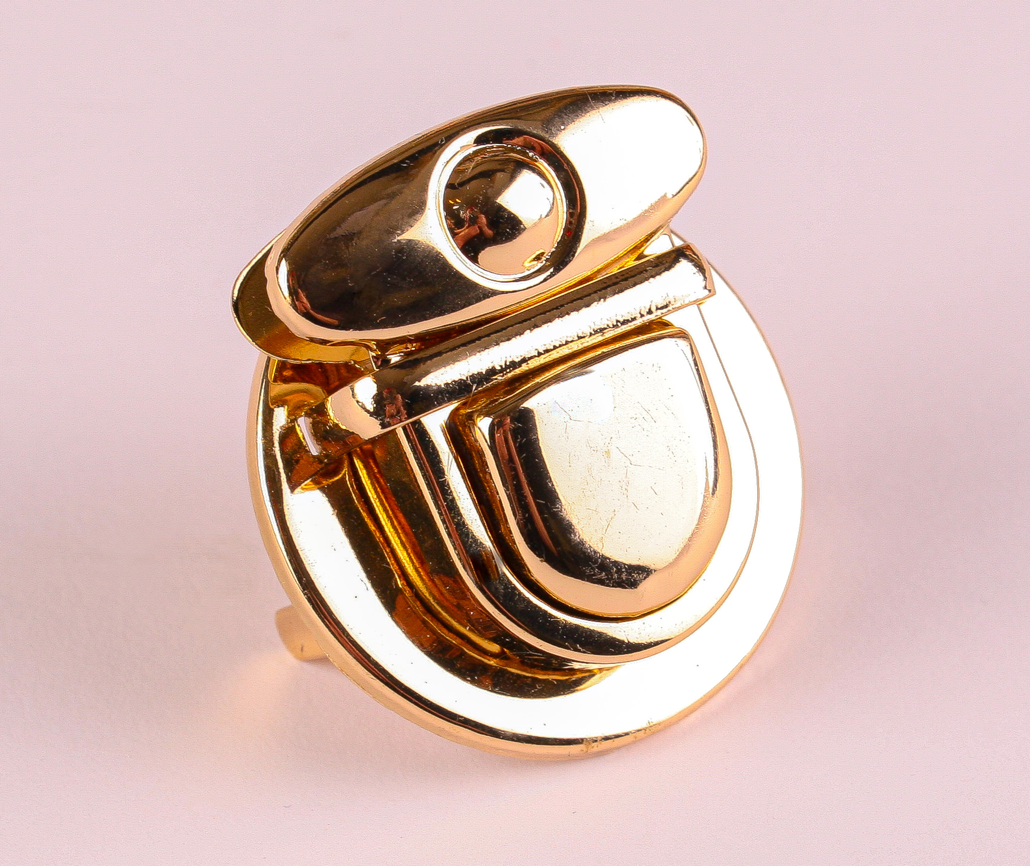 No screws, simply push the prongs through your fabric and open up. The tongue grips on to your bag flap.