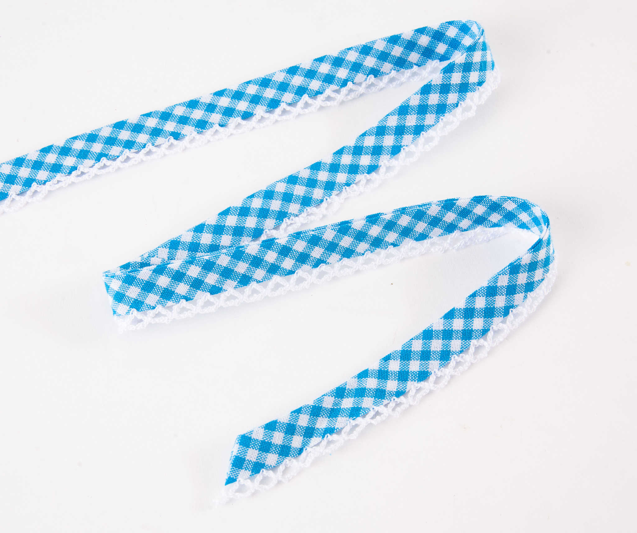 15mm Pre-Folded gingham Picot Edged Bias Binding