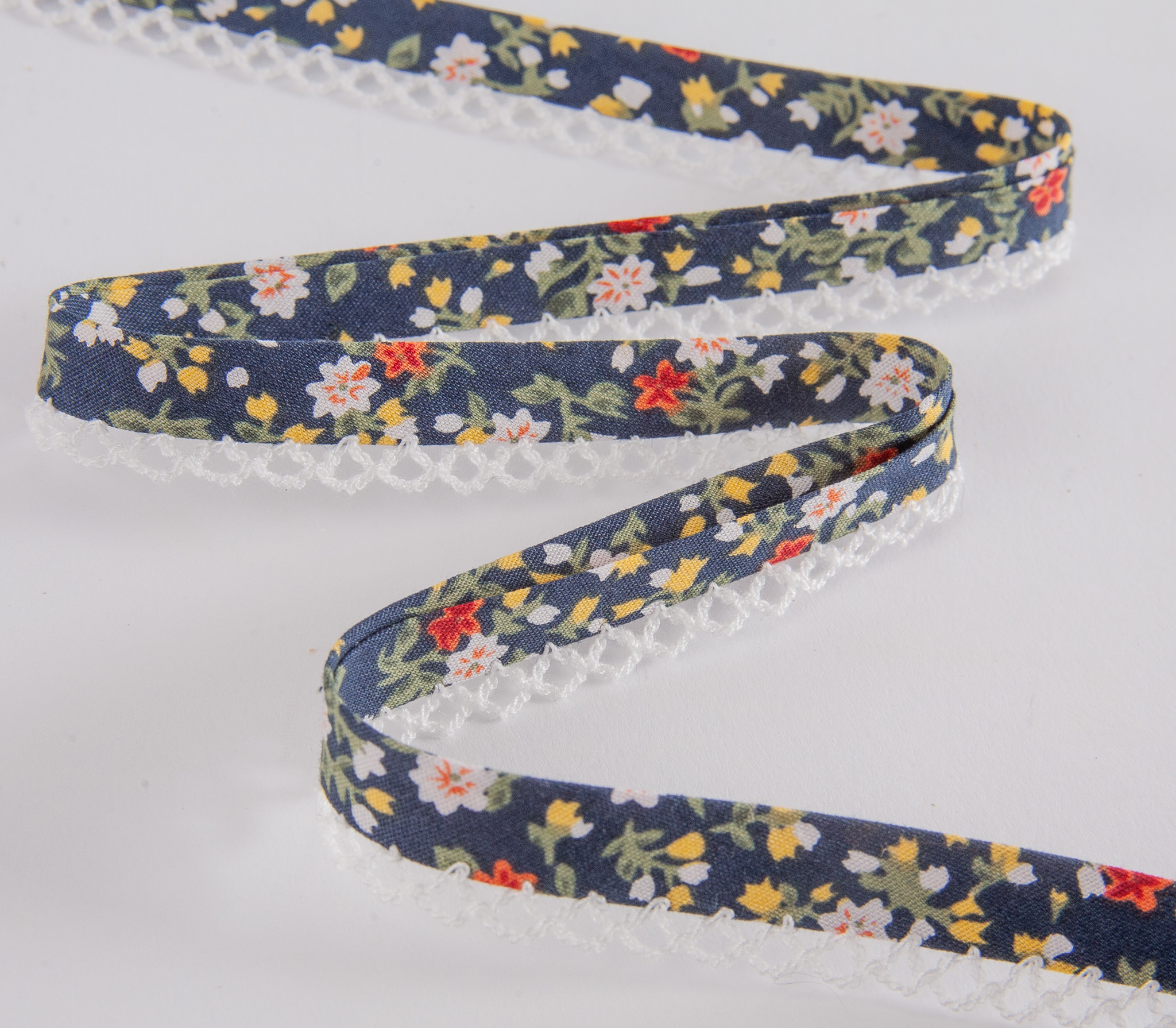 15mm Pre-Folded Floral Picot Edged Bias Binding
