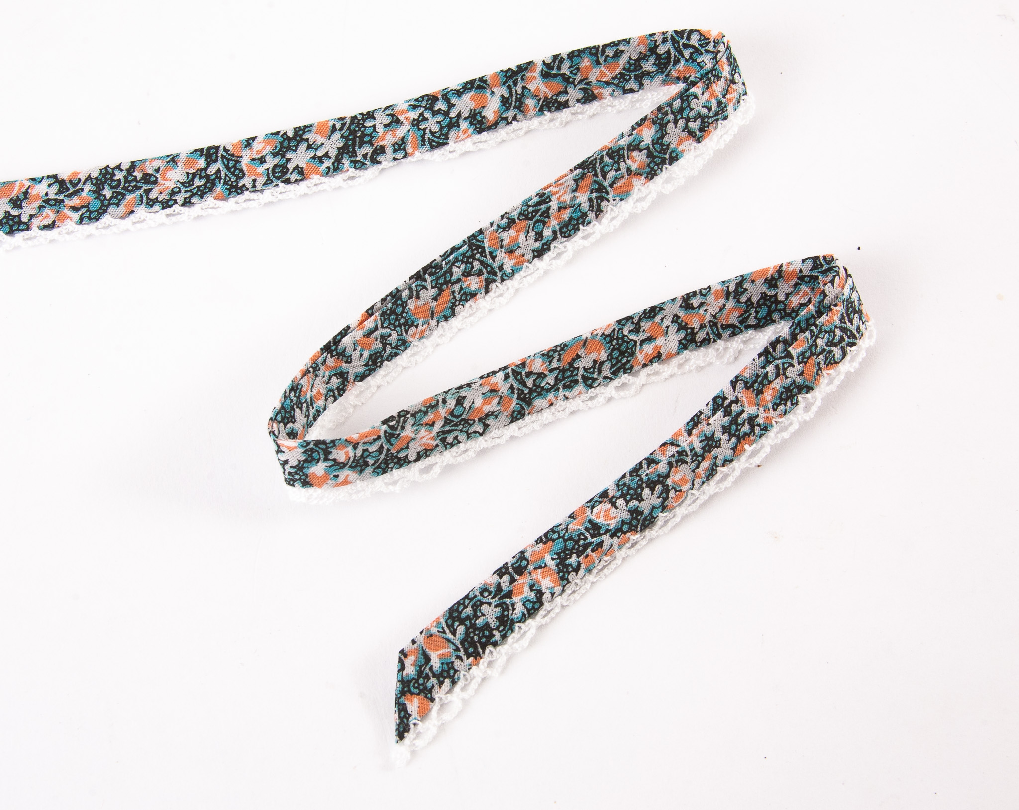 15mm Pre-Folded floral Picot Edged Bias Binding