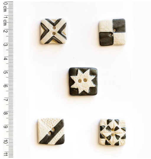 5 mixed black and white quilt square buttons.