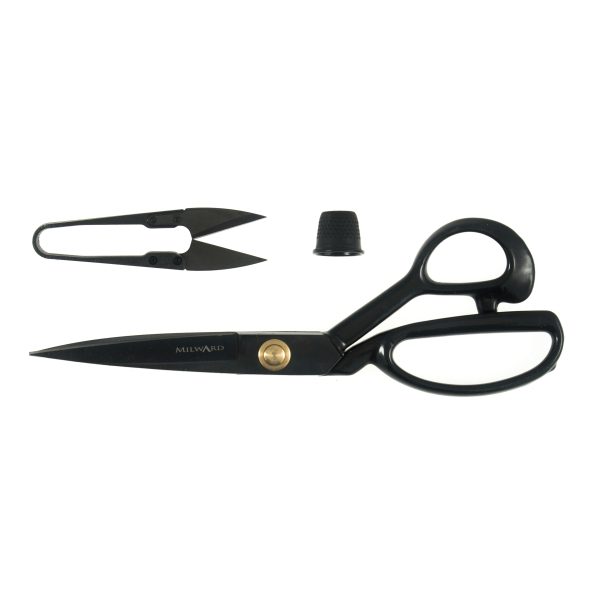 Milward Dressmaking Scissors Gift Set – Heavy Duty (23cm) and Thread Snips (10cm) Black and Thimble
