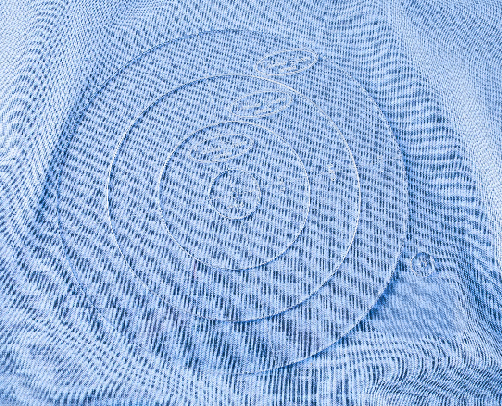 1″, 3″, 5″ and 7″ templates with quarter circle markings. So useful for both needle and paper crafts!