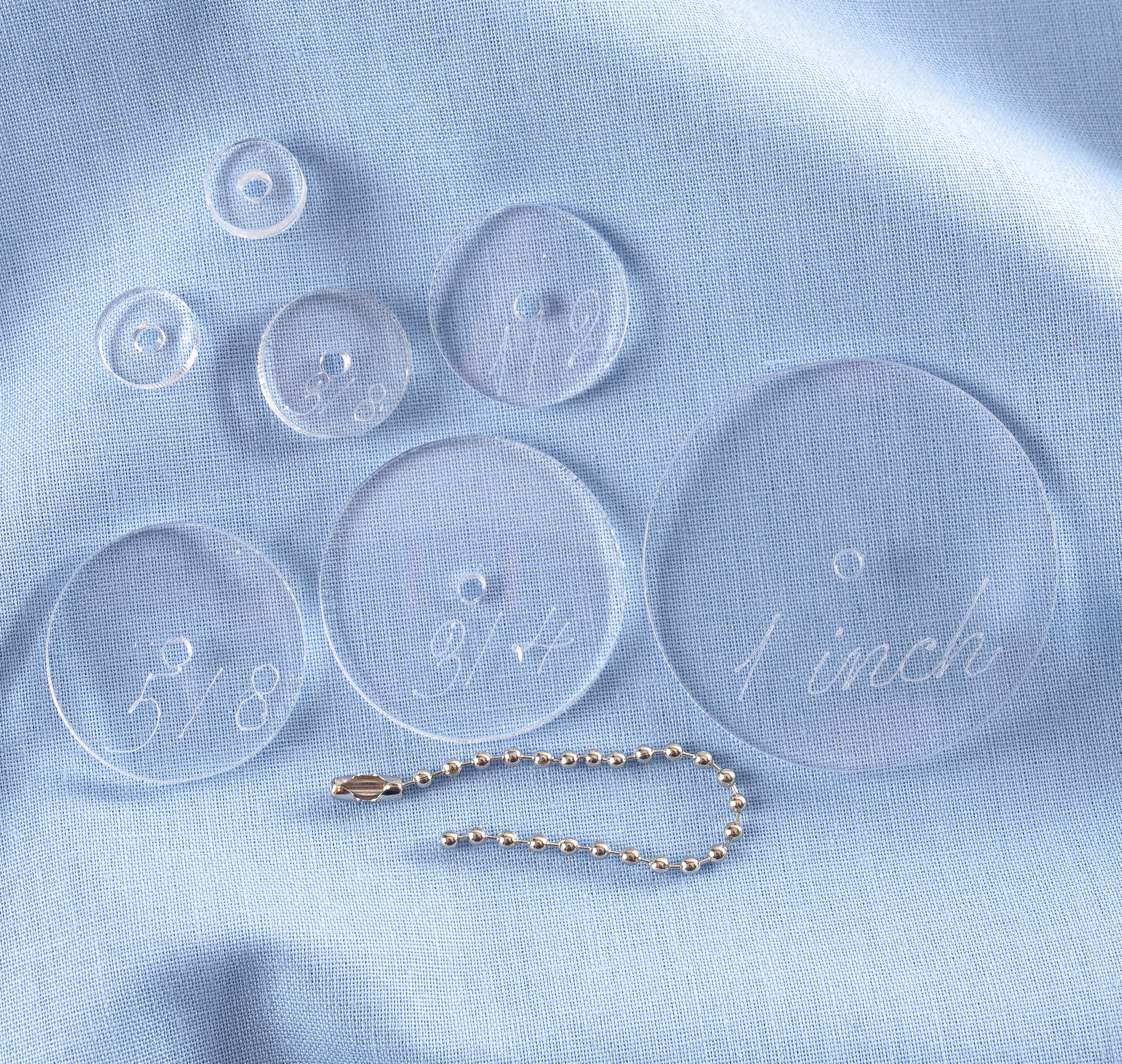 A set of 7 seam discs in 6 sizes, add 1/4″ 3/8″, 1/2″, 5/8″, 3/4″ or 1″ seam allowances to make the most of your acrylic templates, simply by popping as pen through the centre hold and guiding the template around an existing template.