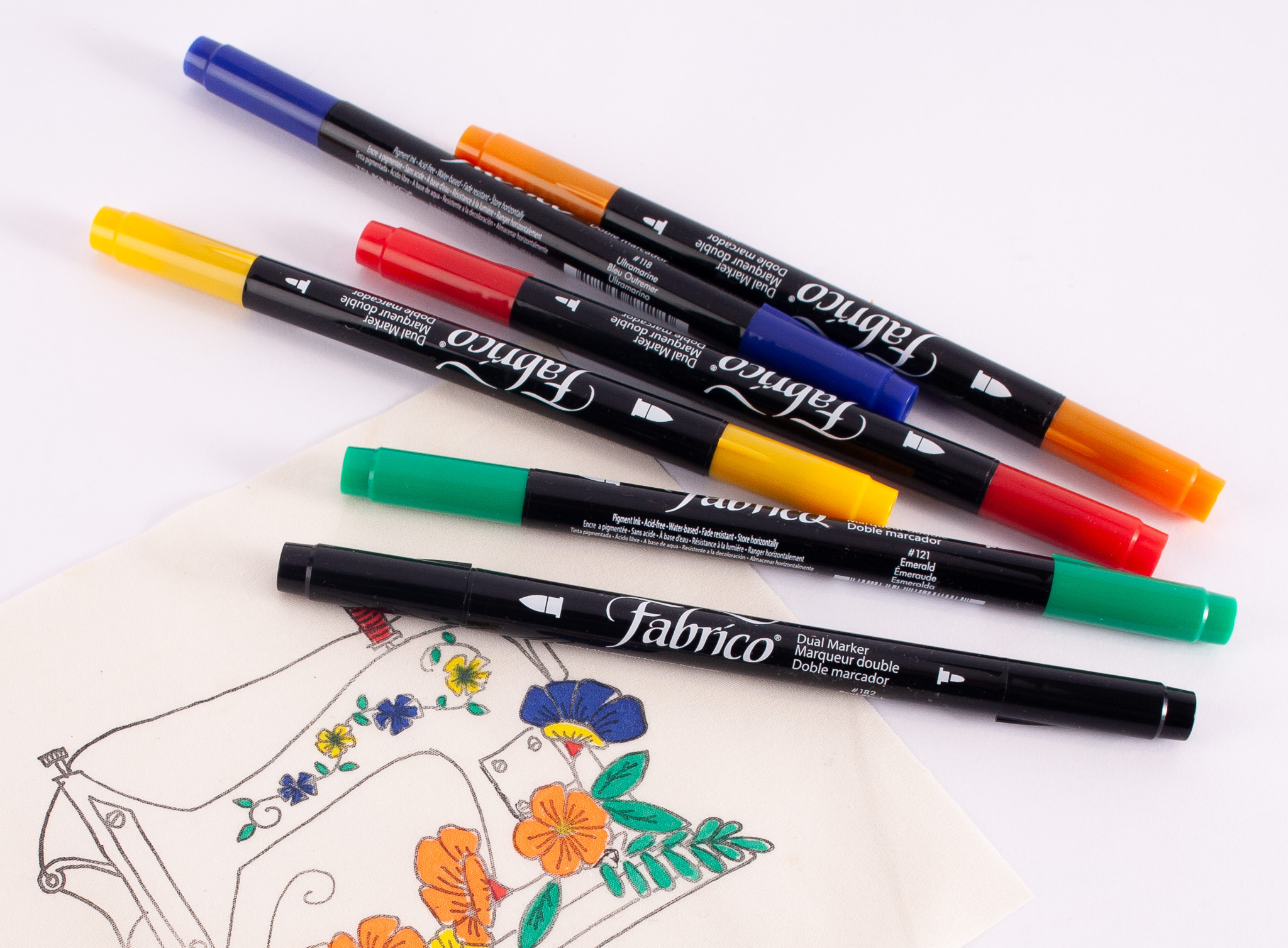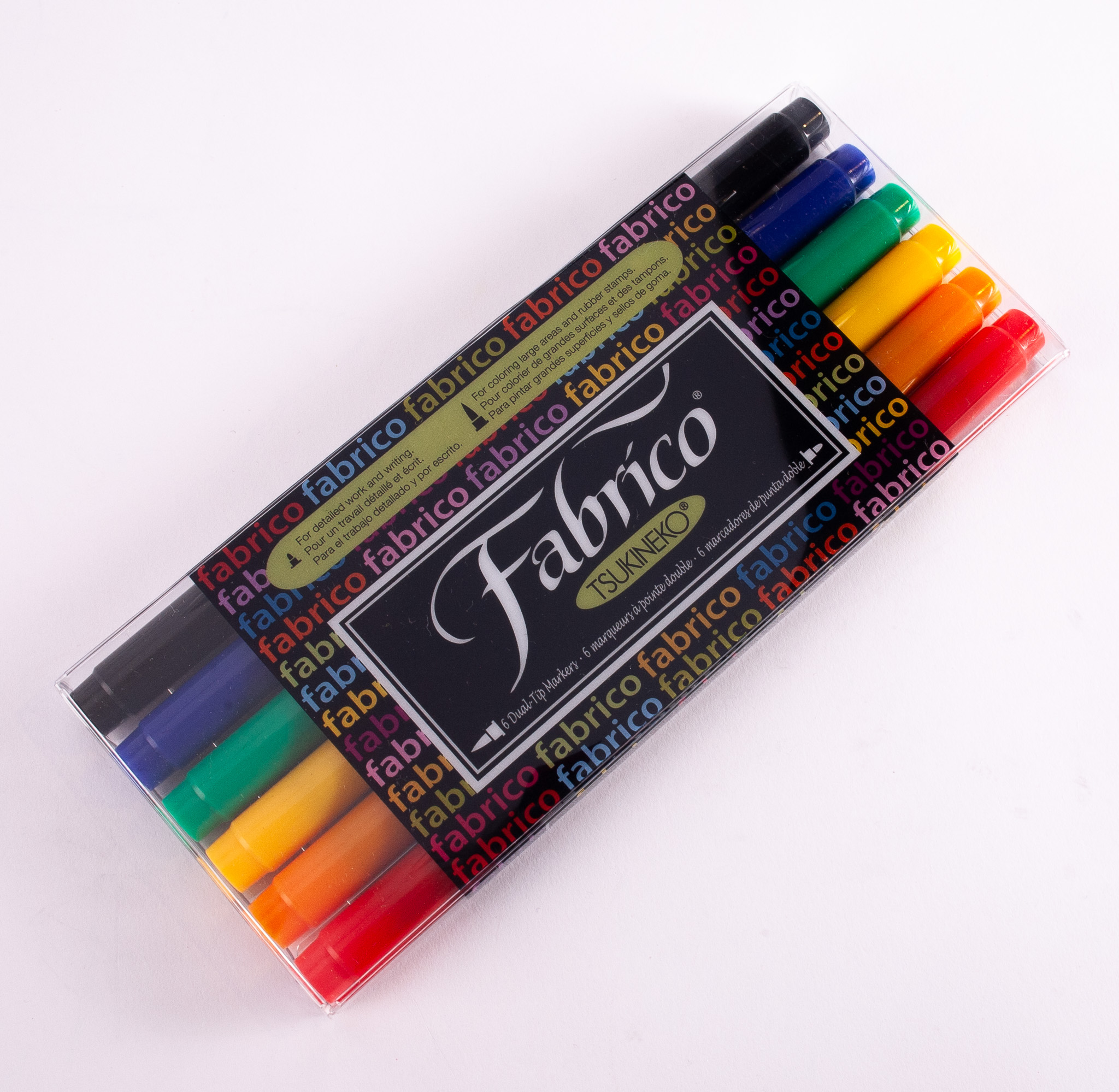 6 Piece Fabrico Dual Tipped Marker Set. Perfect for adding details and lettering to stamped projects on a variety of surfaces. Fade resistant and acid free Fabrico Dual Markers do not need heat setting. They feature both a brush and bullet tip.