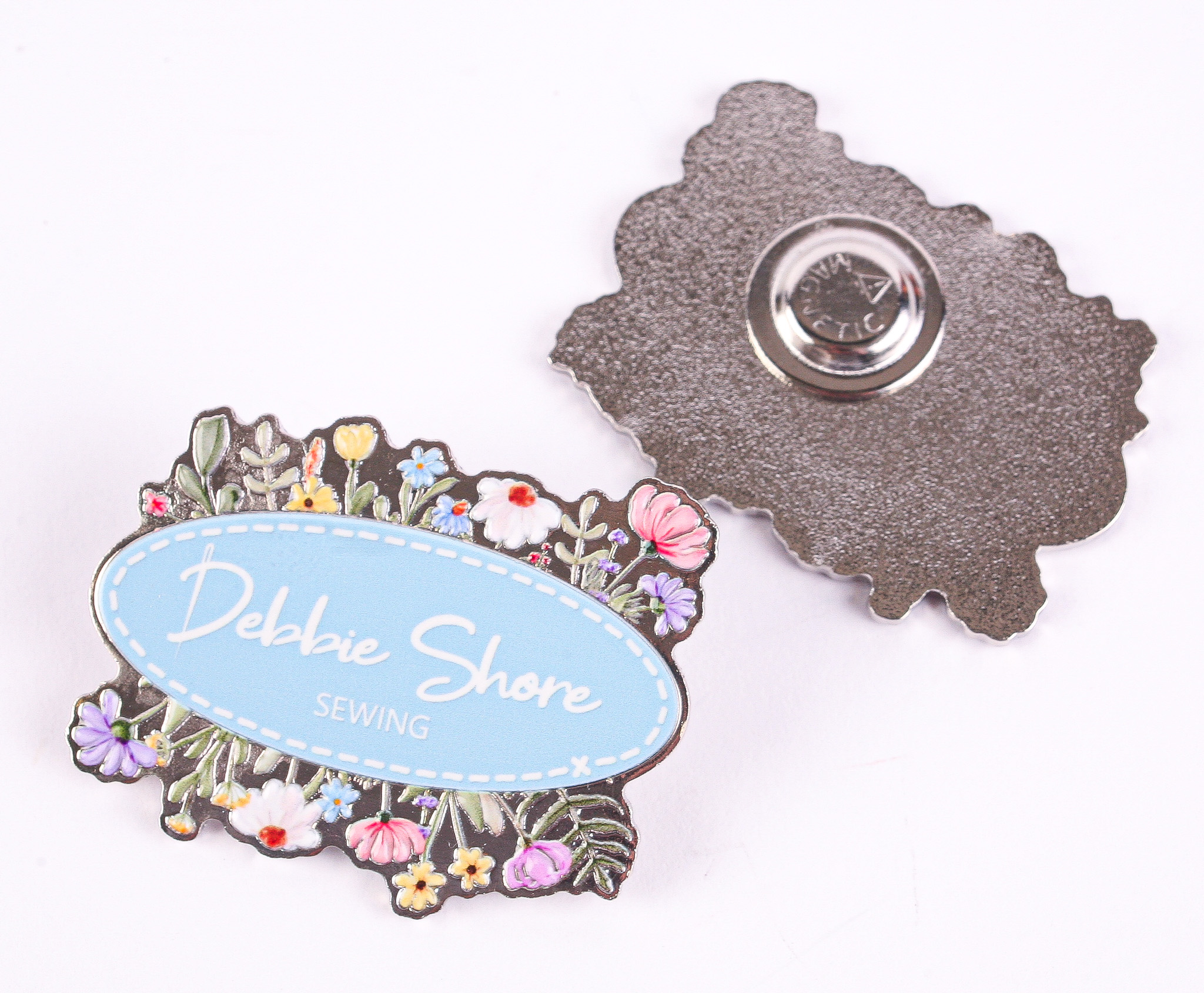 Show off your love for sewing with our exclusive Debbie Shore Sewing pin badge – a beautiful keepsake featuring the classic Debbie Shore logo surrounded by delicate floral details.