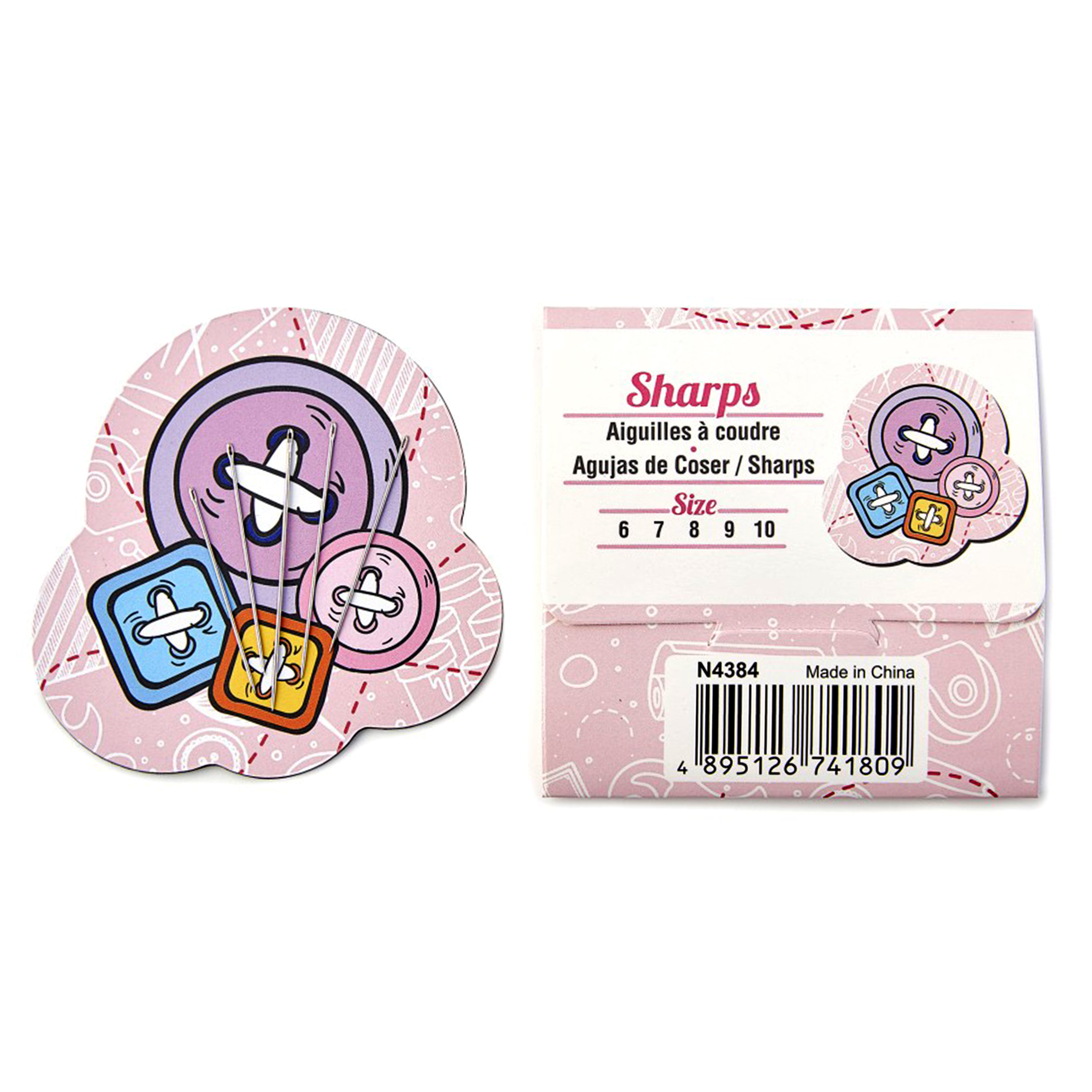 Handy rubber magnetic sheet in 4 novelty designs holding 4 different needle types in 5 assorted sizes: Embroidery: 5, 6, 7, 8, 9; Sharps: 6, 7, 8, 9, 10; Quilting/Betweens: 5, 6, 7, 8, 9; Tapestry: 18, 20, 22, 24, 26.