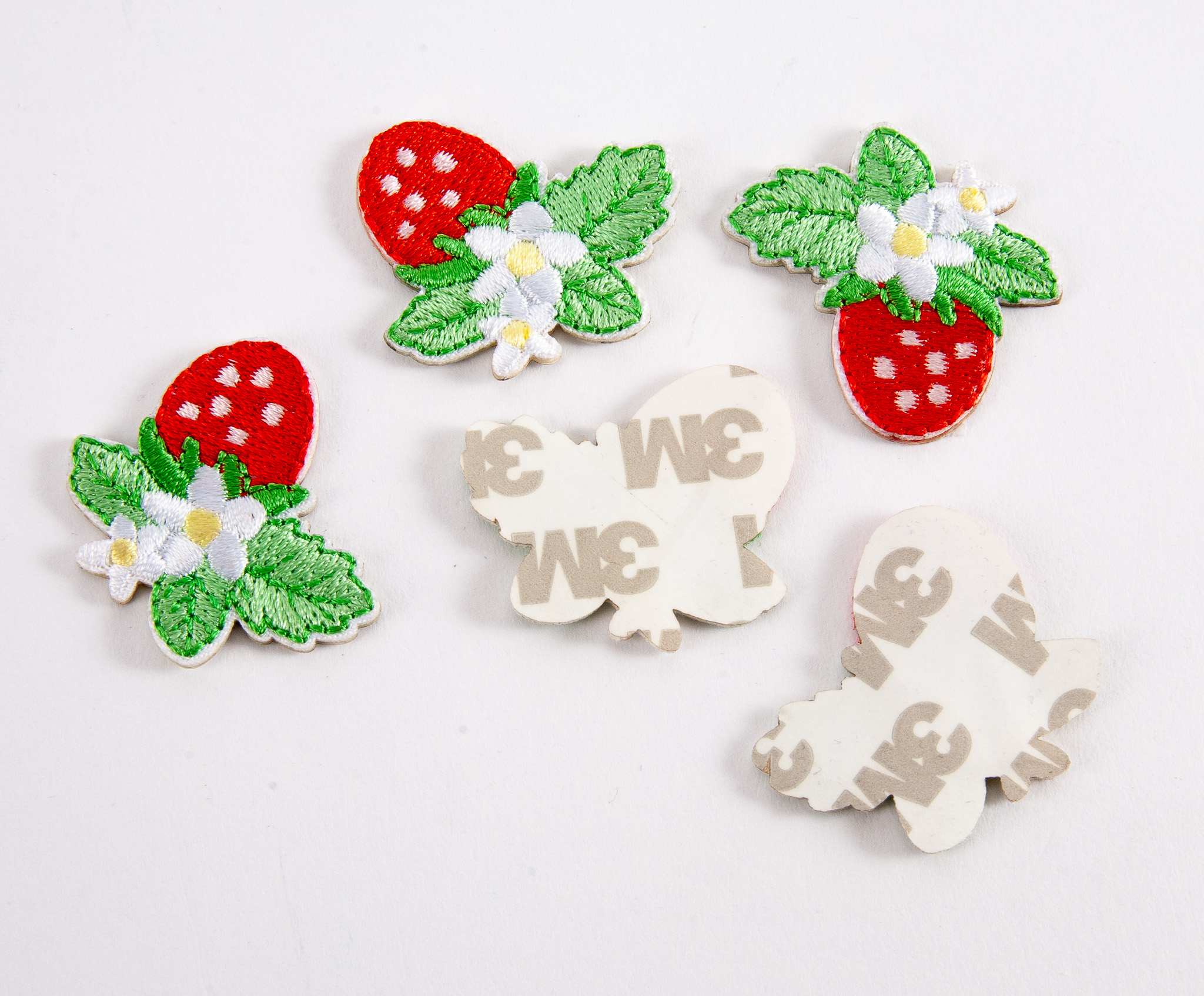 5 embroidered strawberry sticker patches, great for card making and gift tags