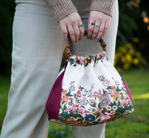 These instructins are to create a bag with 6″ x 4″ rounded bamboo handles, but could be used with other round handles, wood or plastic.