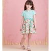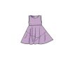 Children’s and girls’ pullover dresses have bodice, raised waist on skirt, narrow hem and purchased ribbon belt.