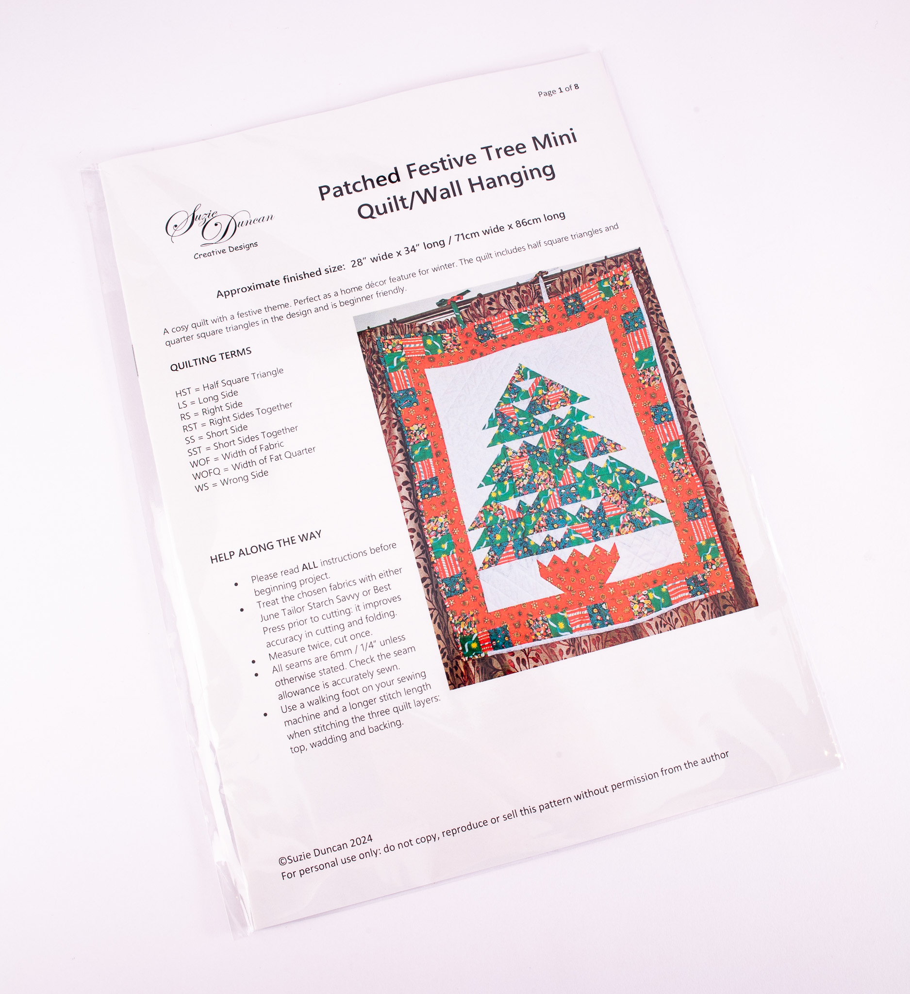 A cosy quilt with a festive theme. Perfect as a home decor feature for winter. The quilt includes half square triangles and quarter square triangles in the design and is beginner friendly.