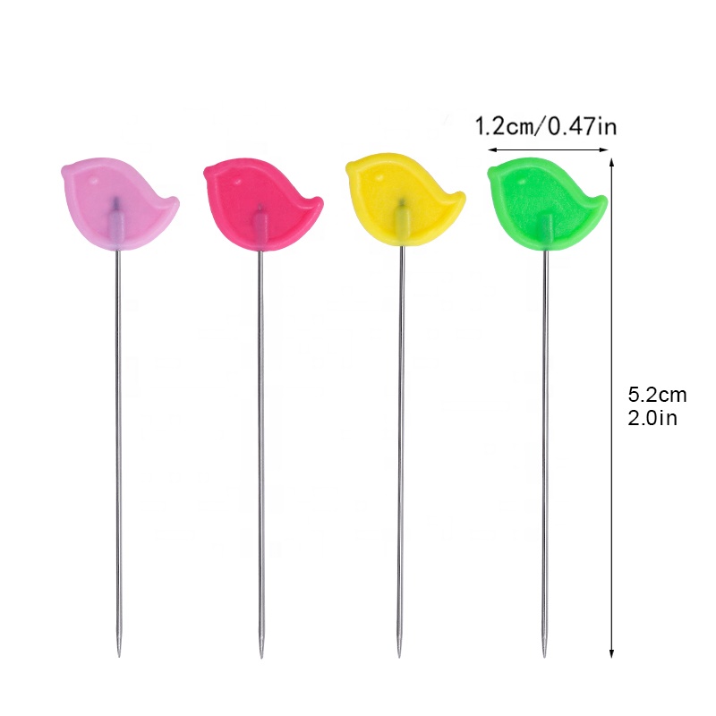 53mm bird-shaped head sewing pins are made of durable plastic and stainless steel