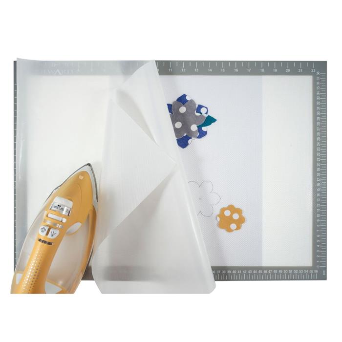 Heavy-duty, see through, non slip and non stick silicone fusing mat for sewing, quilting and ironing. Made from non slip material that prevents movement so fabrics remain in place. Non-stick surface avoids any sticky marks from fusing and glues. Item size: (w/h) 43.2 x 61cm.