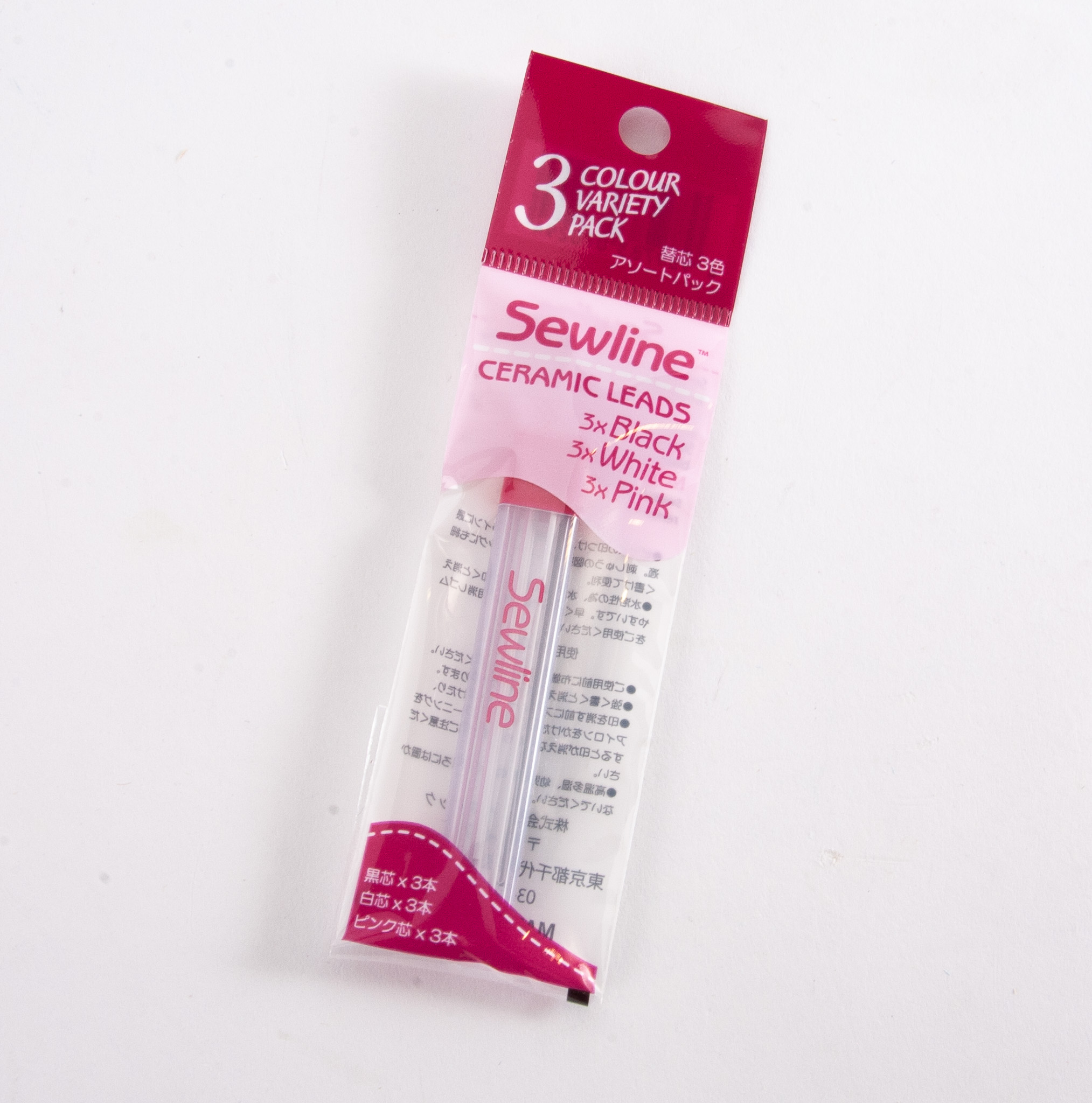 Ceramic refill leads for the Sewline Trio Color Pencil in black, white and pink. Strong 0.9mm ceramic leads specially formulated for drafting on fabrics. Can be erased with polymer eraser or dabbed off with water.