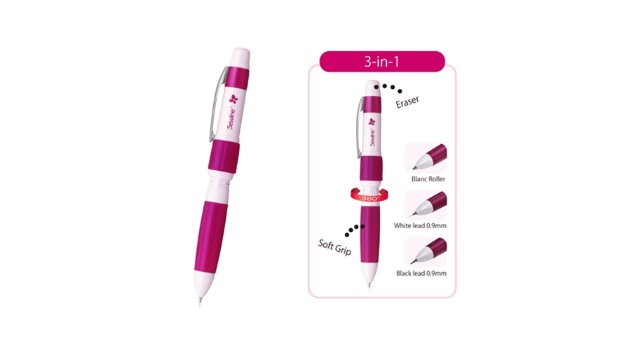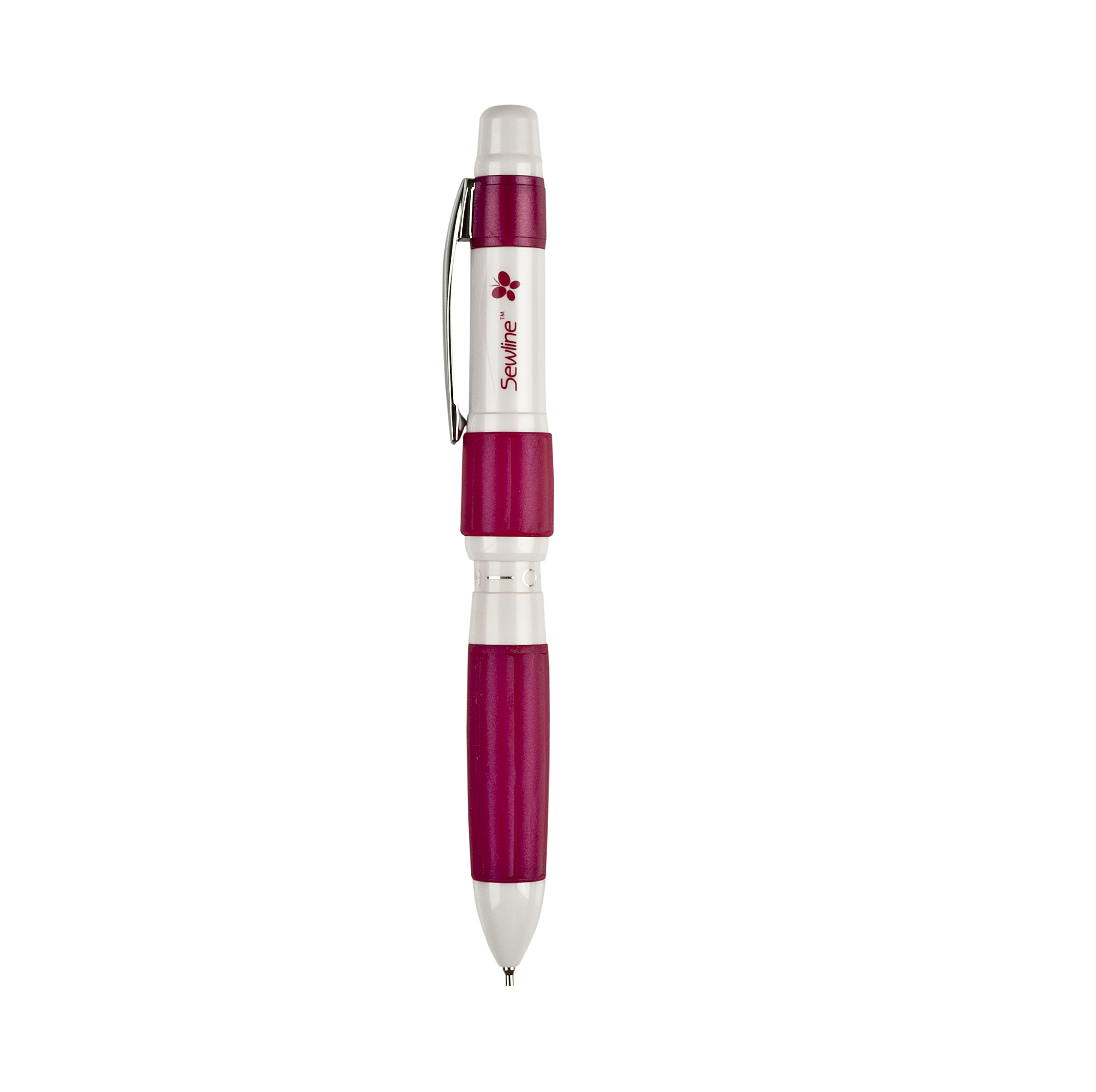Very convenient when drafting light or dark fabrics of varied colours. Just rotate grip to advance a lead colour-black, white or pink. Leads are refillable. Sewline lead markings can be remove with polymer eraser or be dabbed off with water.