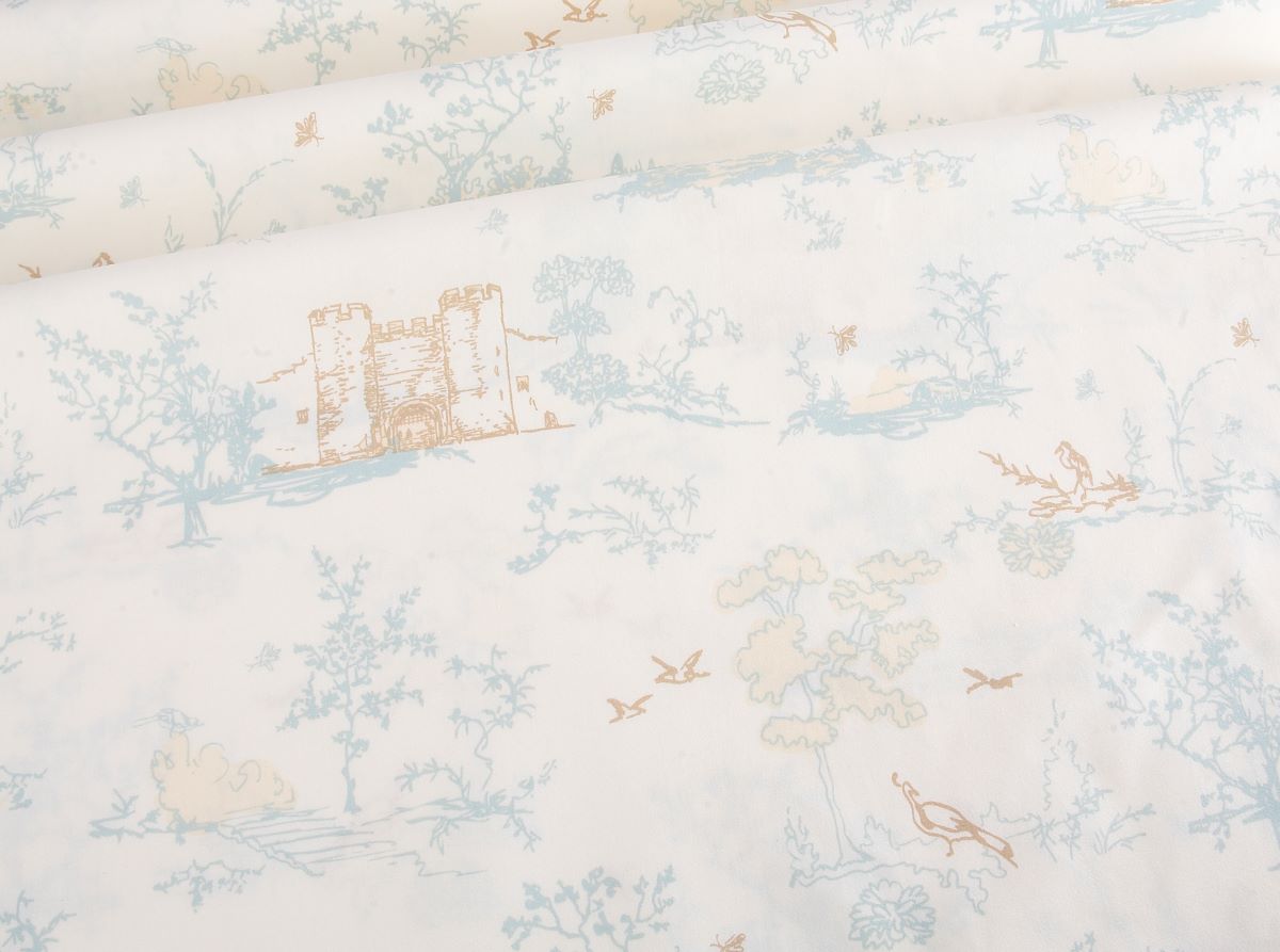 Experience the mystical realm of Willow, a collection where flora and fauna enchant charming forests and dreamy castles in hues of mauve, leafy green, gold, and ivory.