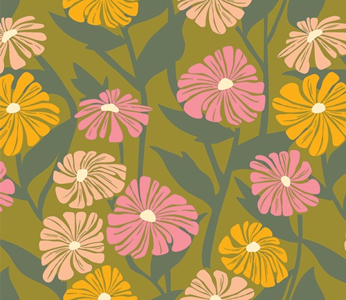 Swing into spring with bold florals and groovy prints in Flower Bloom. In warm saturated yellows, moss greens and energetic pinks this collection is blooming with color. Express your inner flower child with vintage inspired prints and playful designs.