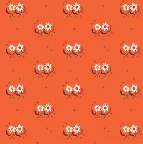 Cute dancing flowers on a deep orange background.