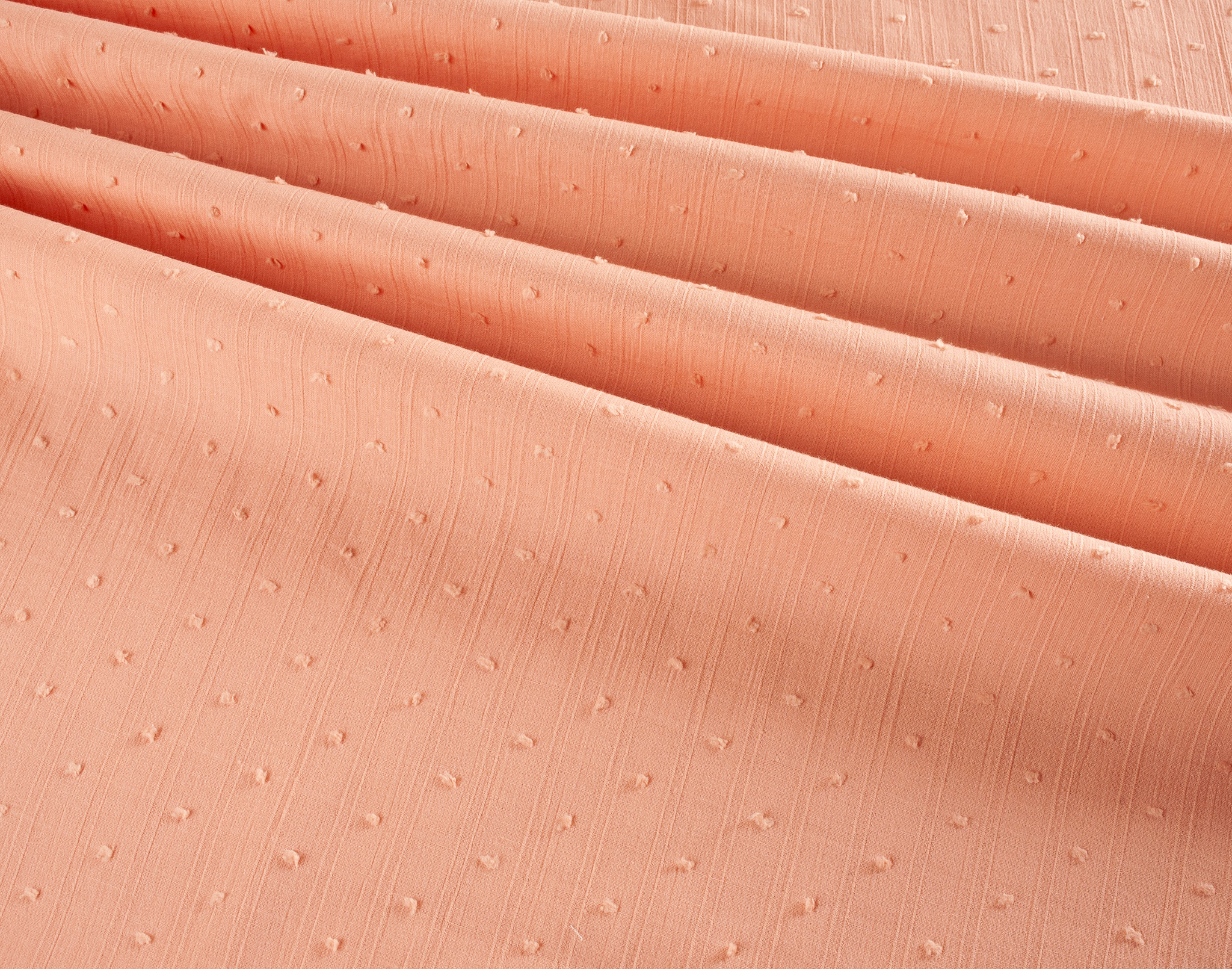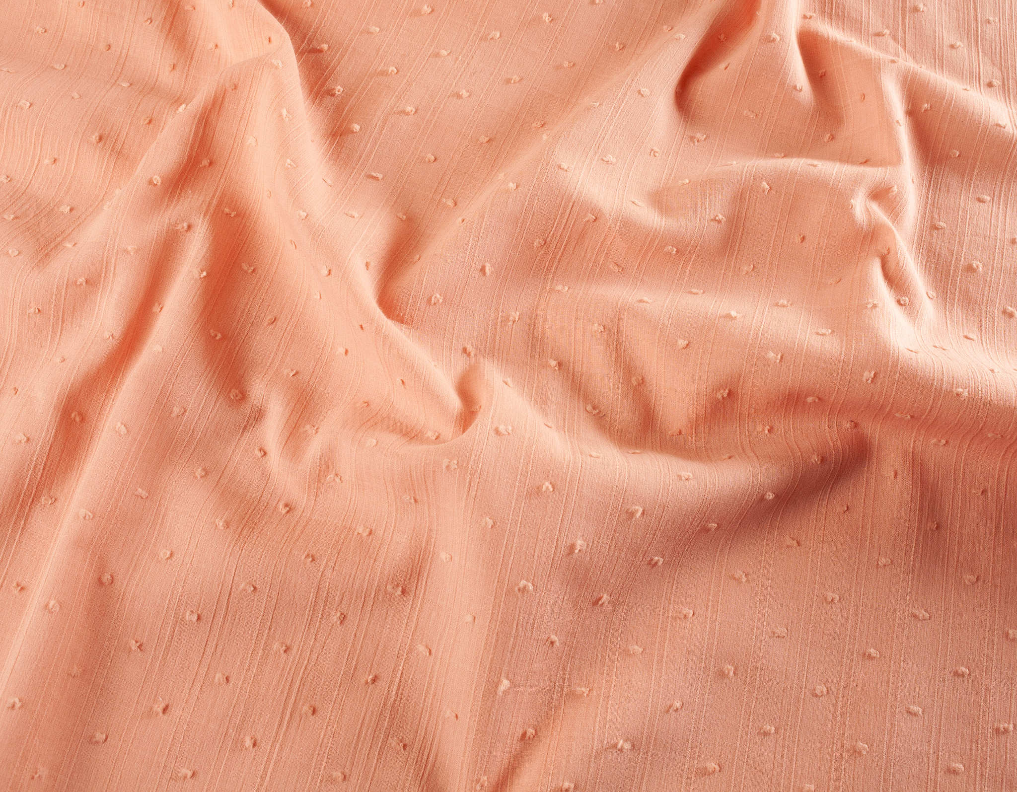 A lightweight dressmaking cotton fabric with dobby spots throughout. lovely for summer sewing projects. This fabric is slightly see through so you may wish to use a lining.