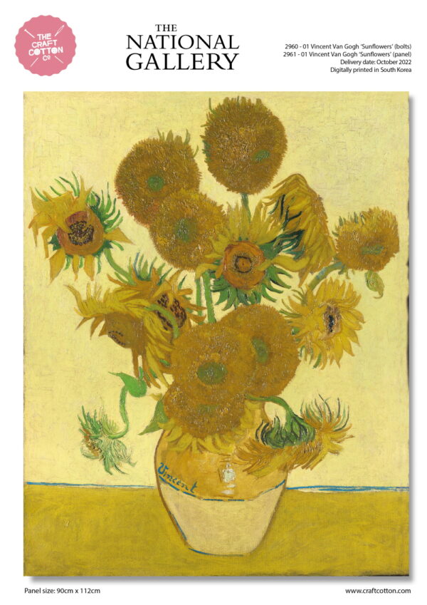 100% cotton fabric panel inspired by Vncent Van Gogh, 1853-1890 Sunflowers (1888)