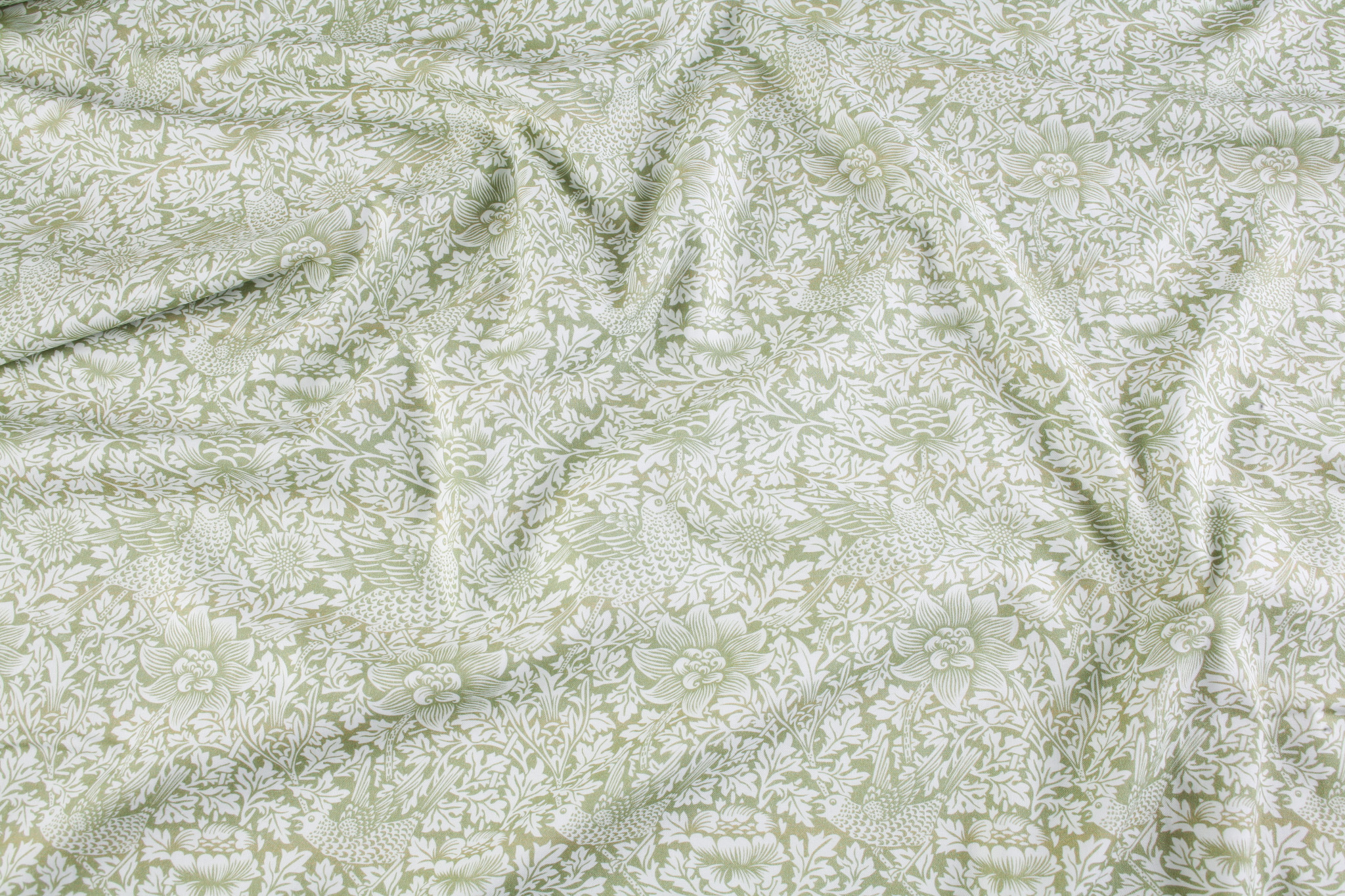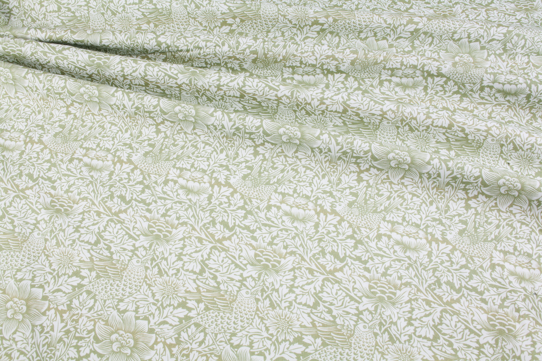 A stunning dressmaking fabric by The Craft Cotton Company featuring the classic William Morris design ‘Bird Anemone’ in a sage green.