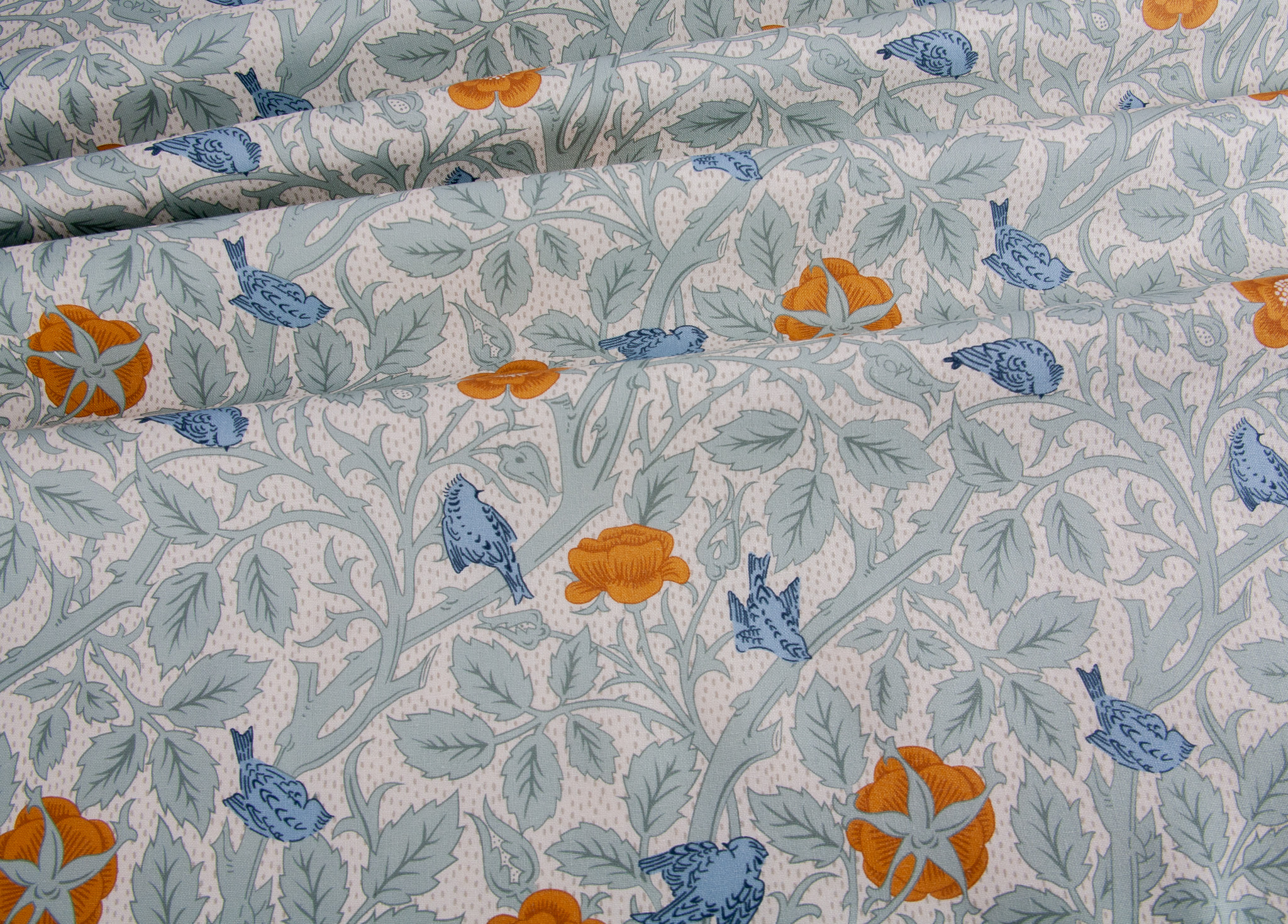 In collaboration with the Victoria and Albert Museum, The Craft Cotton Company’s new William Morris cotton collection features designs based on origional works from the Artist in pale blue and cream tones.