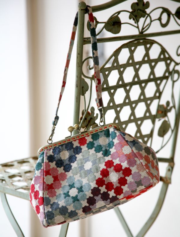 Instructions and pattern for a 7″ bag frame, instructions are for a bag with strap, the pattern will also work with frames with handles long as they measure 7″ across.