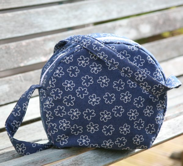 This useful round handbag has a shoulder strap and inside patch pocket, and closes with a zip. Add a touch of style to any outfit!