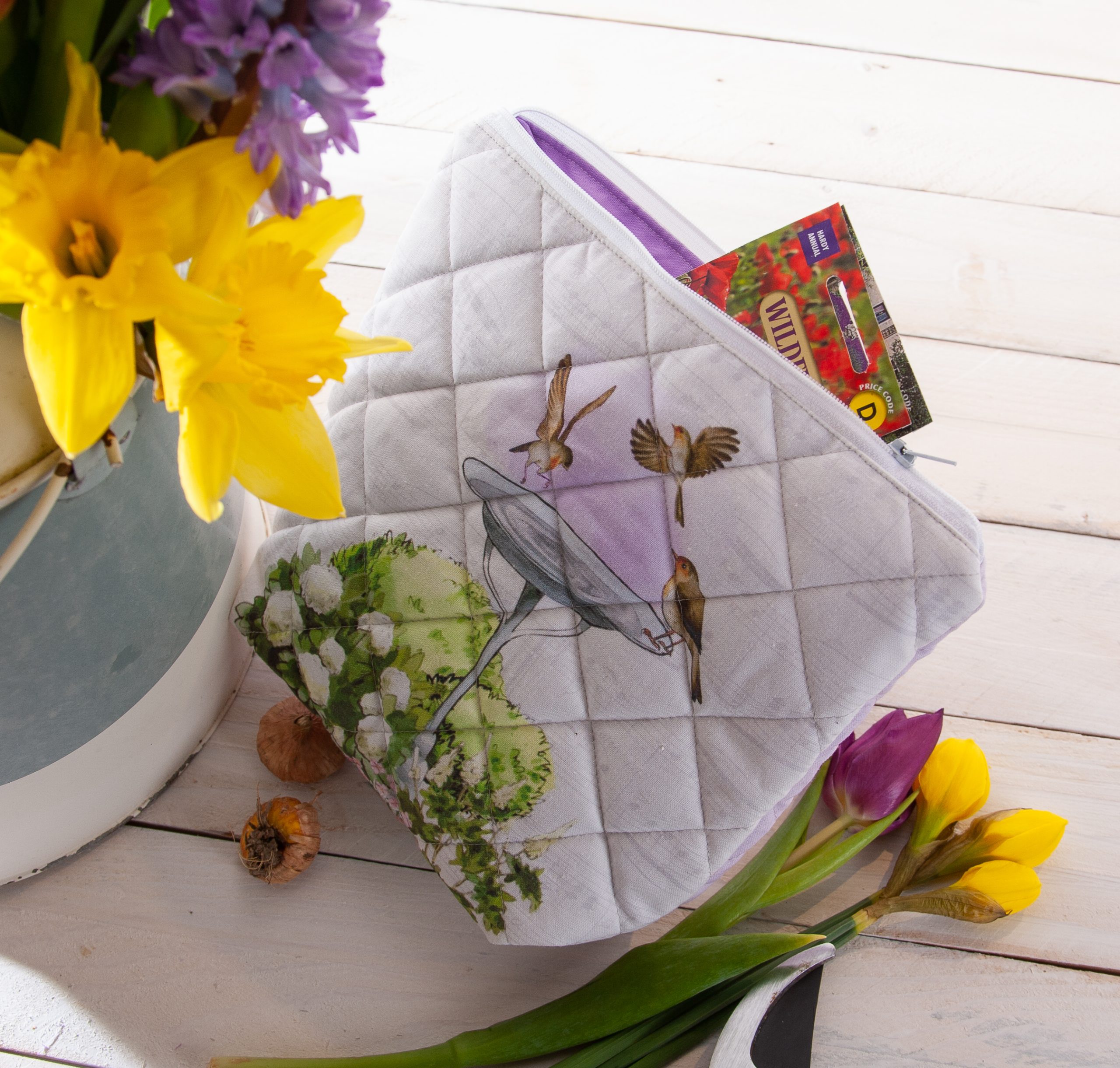 With gardening in mind, this simple quilted pouch will help to keep your seeds, gloves and smaller items organised. Or alternatively it can be used for cosmetics or sewing notions!