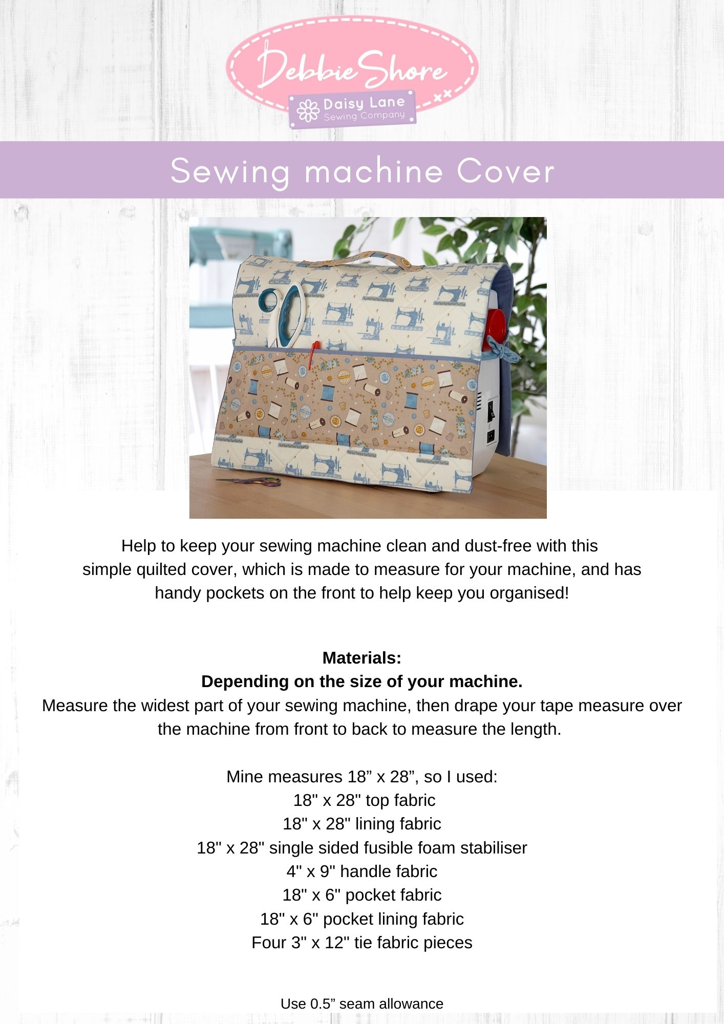 Help to keep your sewing machine clean and dust-free with this simple quilted cover, which is made to measure for your machine, and has handy pockets on the front to help keep you organised!