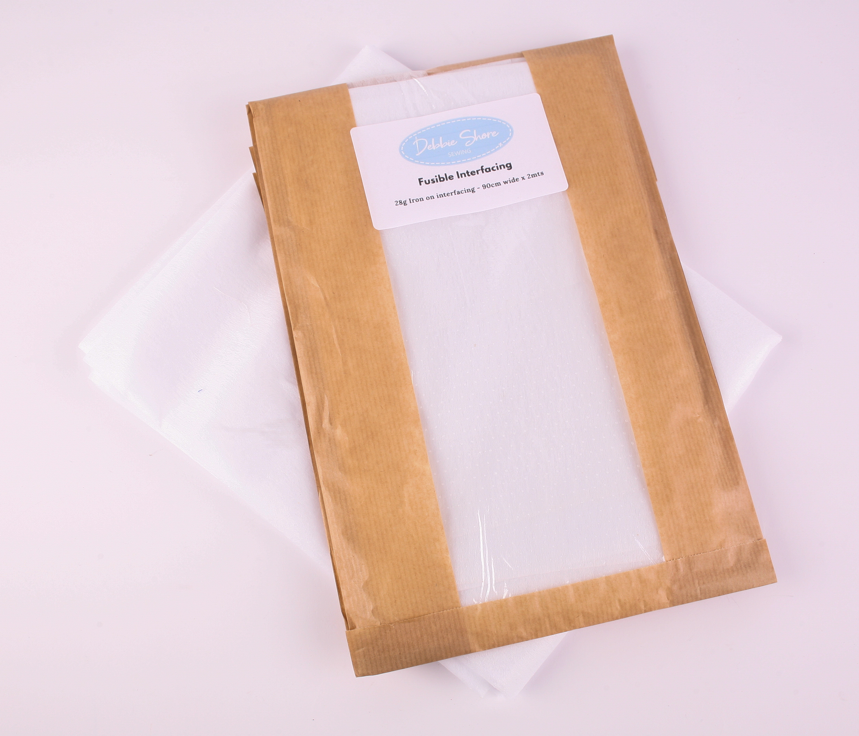 Interfacing to stabilise fabrics, collars and cuffs, a featherweight interfacing for smaller bag projects. 90cm wide.