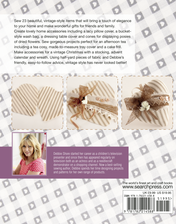Sew 23 beautiful, vintage-style items that will bring a touch of elegance to your home and make wonderful gifts for friends and family. Create beautiful accessories including a lacy pillow cover, a bucket-style wash bag, a dressing table cover and cones for displaying posies of dried flowers; sew gorgeous projects perfect for an afternoon tea including a tea cosy, made-to-measure tray cover and a cake frill; and create accessories for a vintage Christmas with a stocking, advent calendar and wreath. Using half-yard pieces of fabric and Debbie”»s friendly, easy-to-follow advice, vintage style has never looked better!
