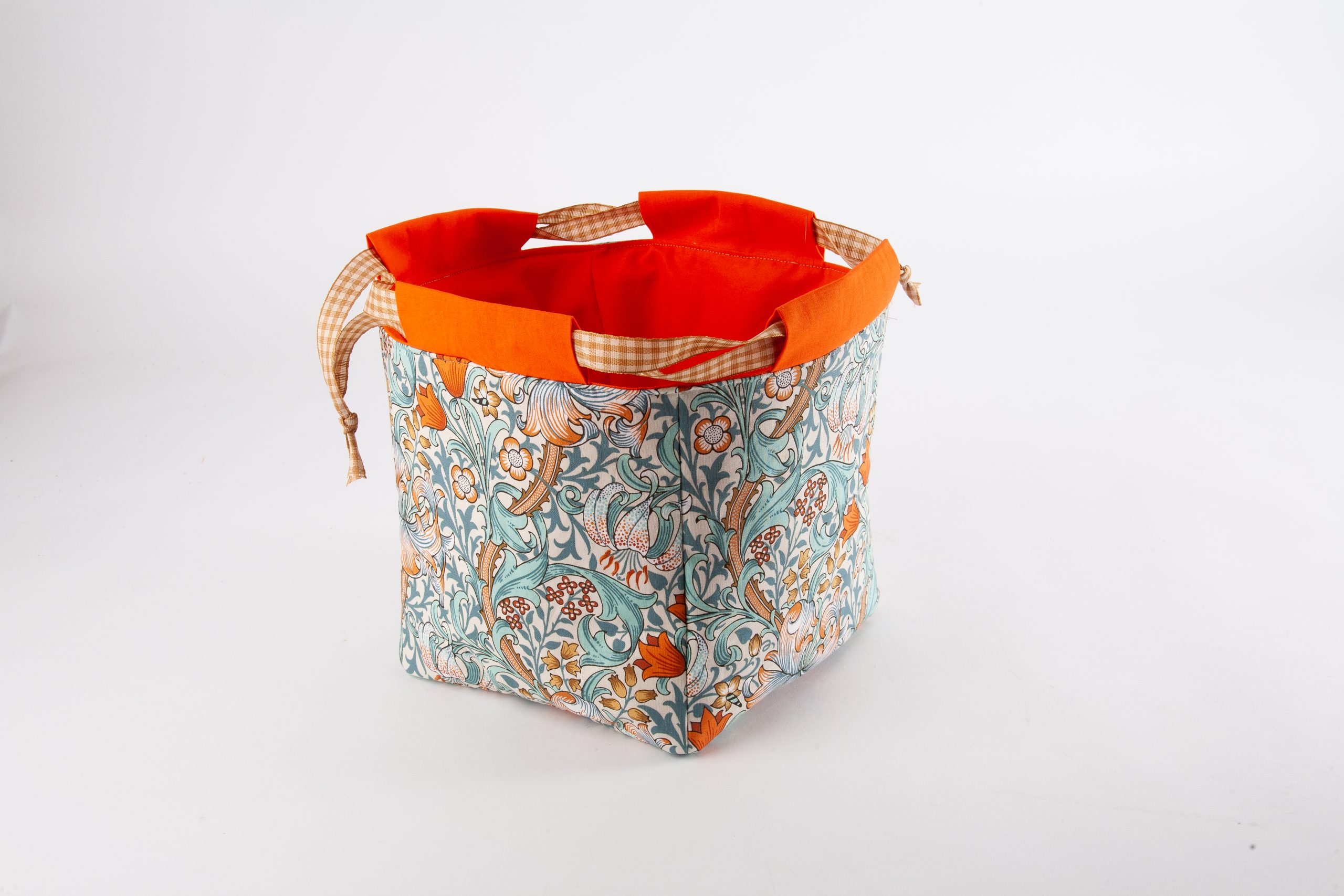 A simple but so useful drawstring bag! Roomier than it looks, this easy to make bag makes perfect storage for sewing haberdashery, knitting yarns, your mini iron and of course hair accessories and cosmetics. It will hang conveniently at the back of a door to make the most of unused storage space!