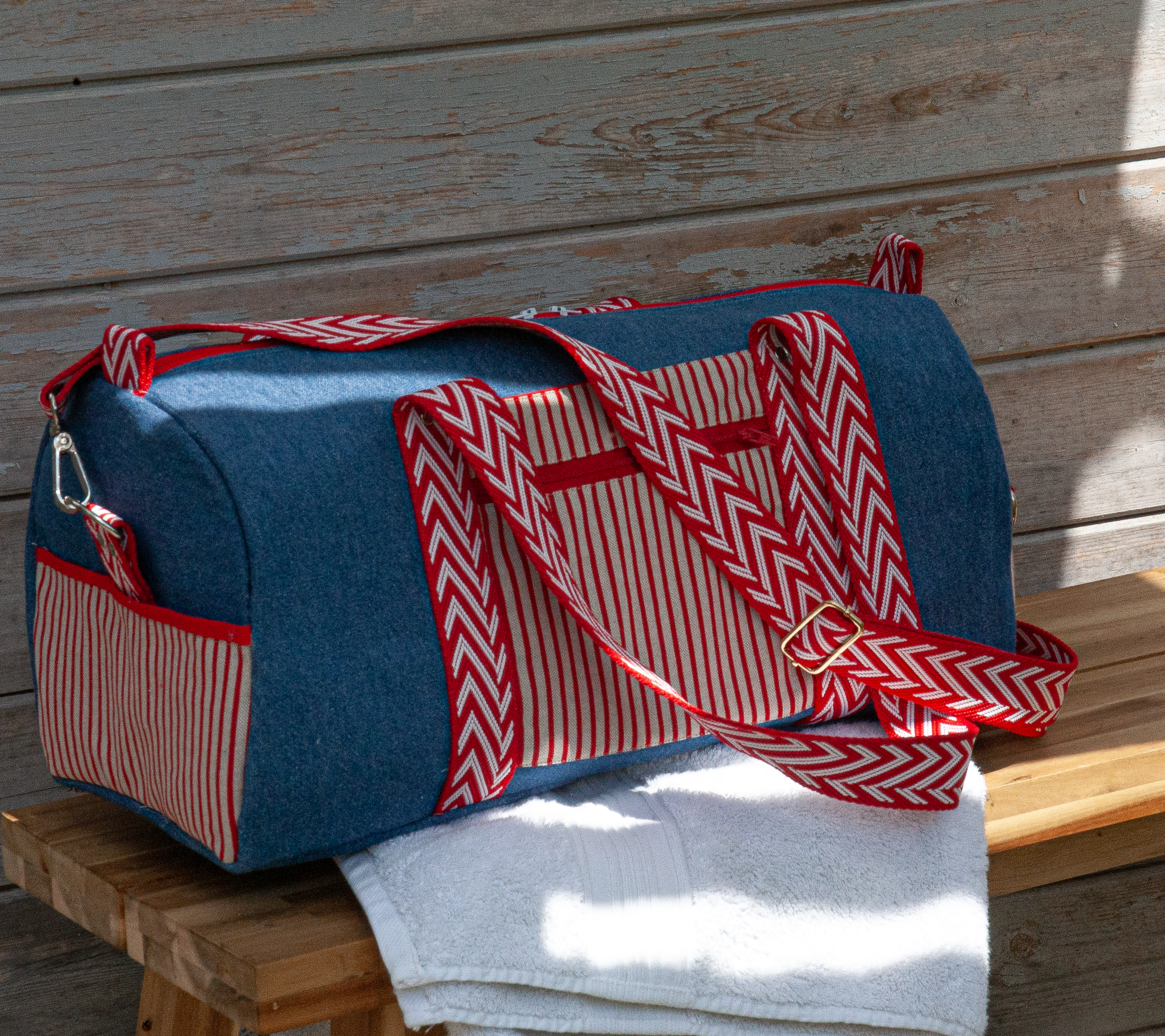 From a weekend away to going to the gym, this large bag will be really handy! It features two secure zipped pockets on the outside, two useful patch pockets on the ends and two more on the inside. It has handles to carry and a detachable shoulder strap. Denim or canvas makes for a sturdy bag, but it can also be made from cotton, and quilting it would also be a stylish option!