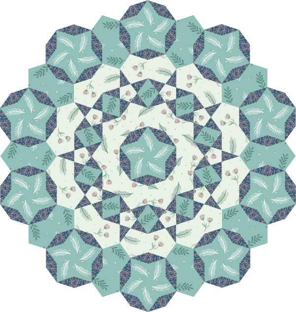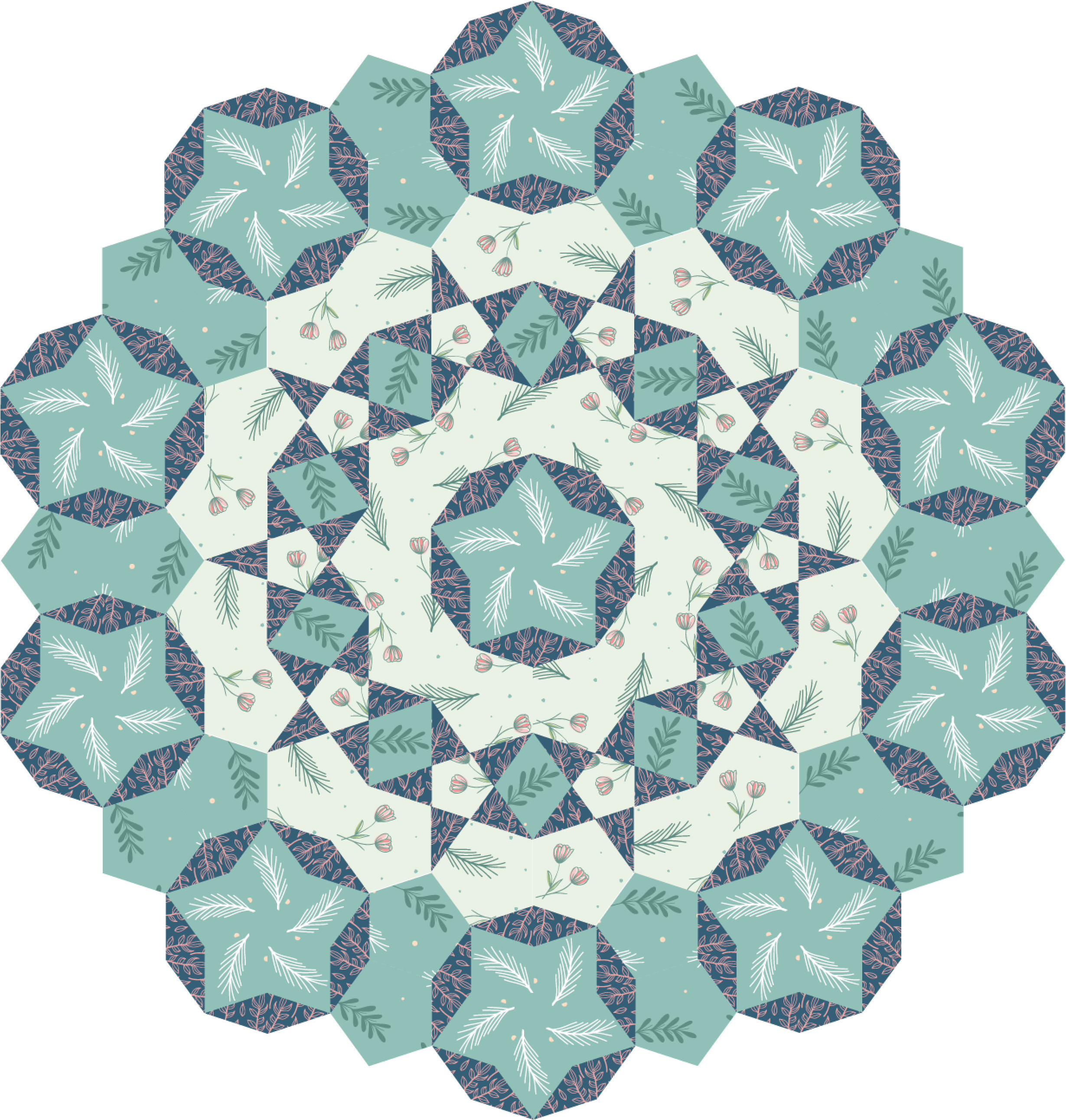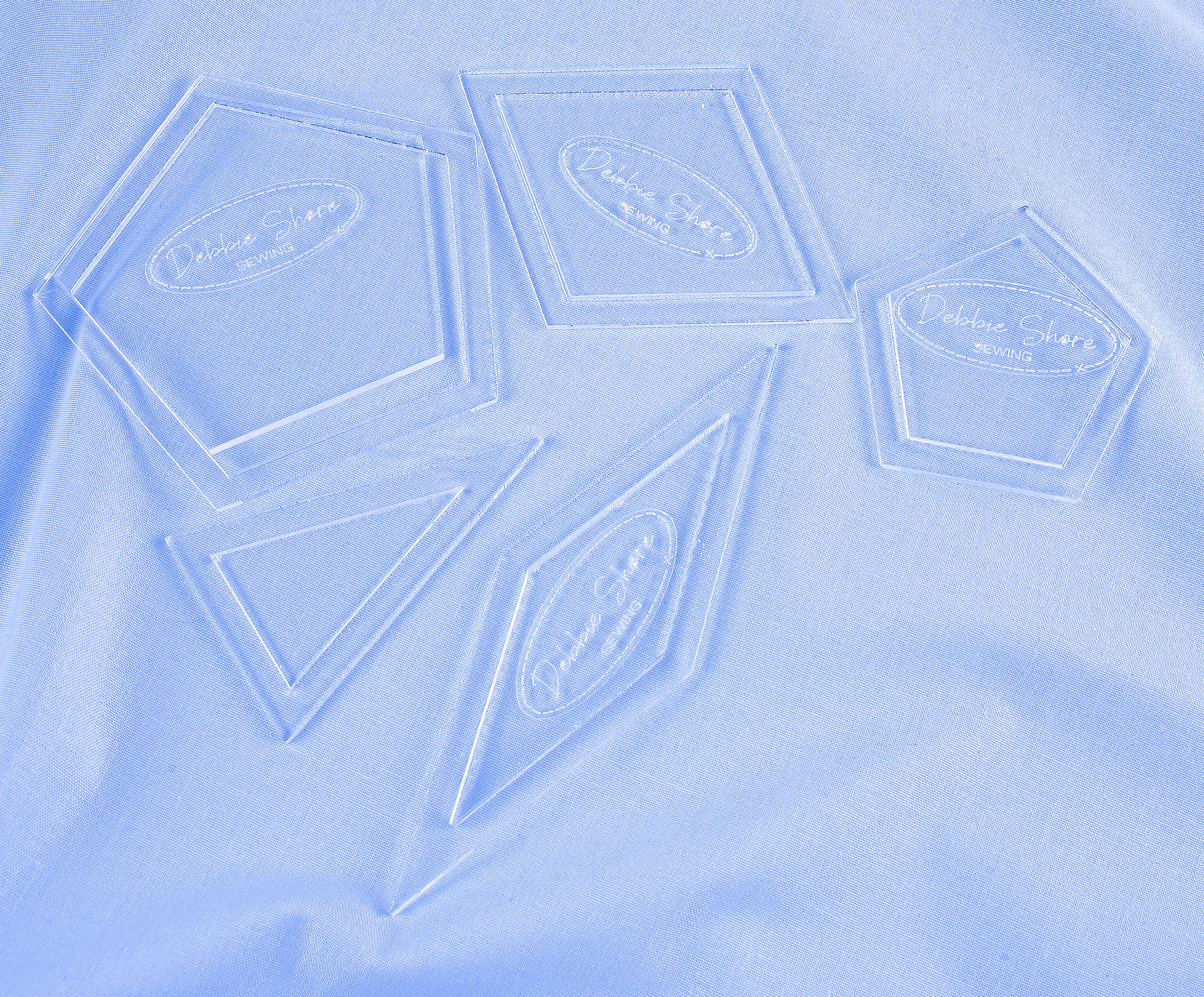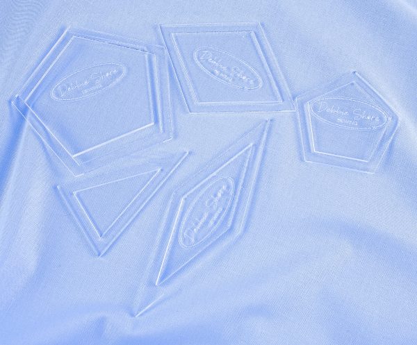 Bundle includes 4 x 62 x pentagons, 2 x diamonds and triangle, each with seam allowance templates. Used together these can create a striking quilt, but of course, the templates can be used individually too.