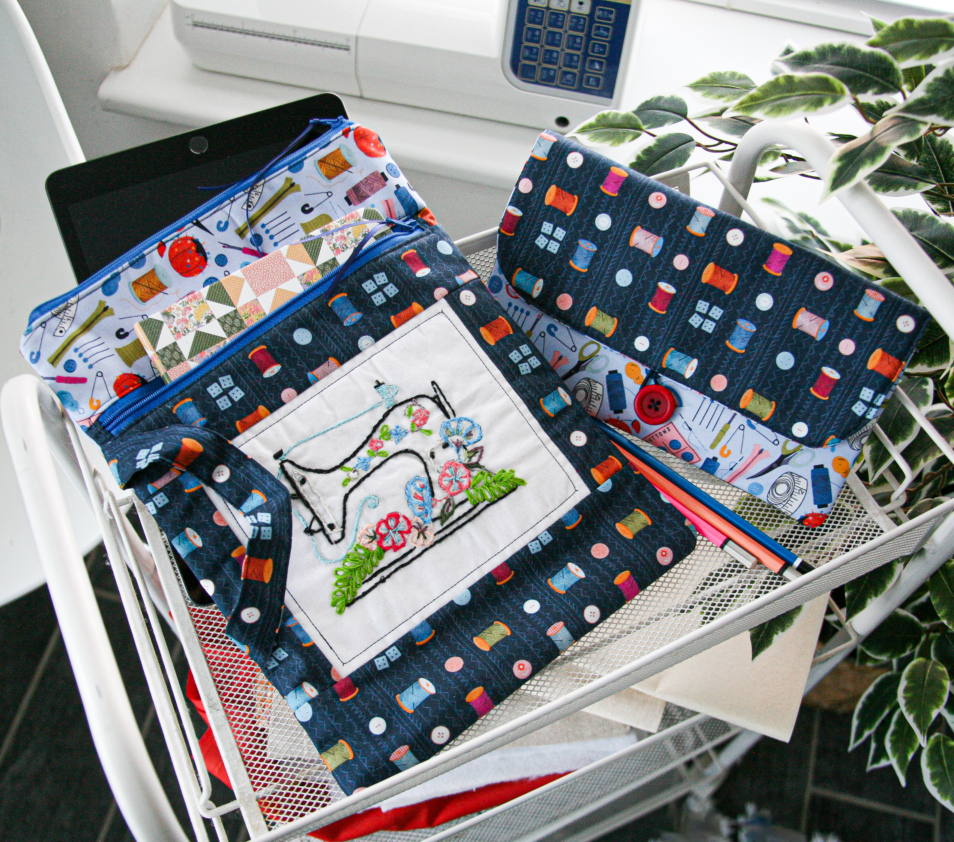 A handy organiser to keep your tablet, with zipped front pocket embellished with an embroidered stamped image that can store an A5 notebook.