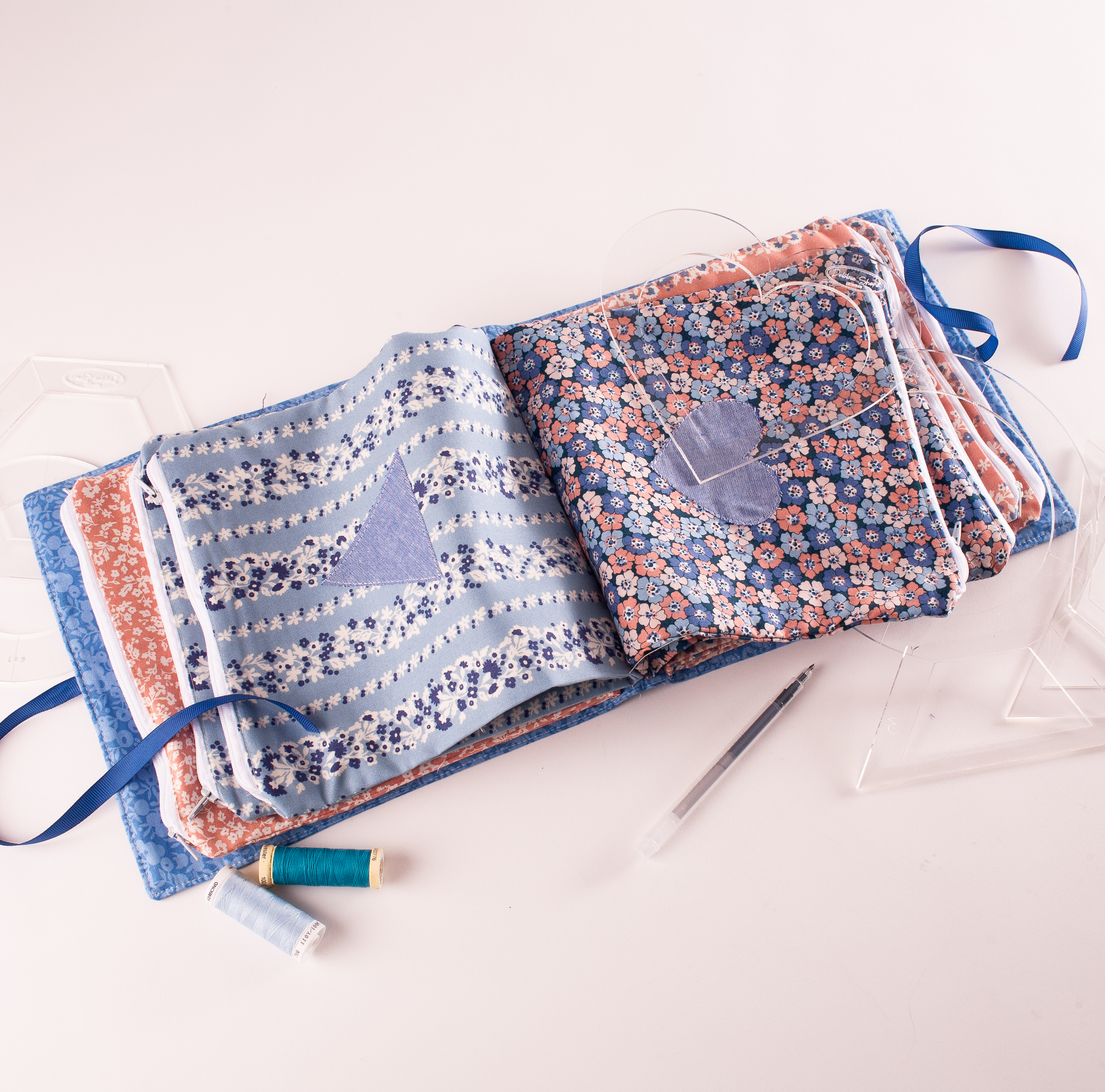 Keep your acrylic templates organised and safe in the pockets of this handy pouch. The applique shapes on each section represent what’s inside! We’ve labelled six pockets leaving two spare for other notions.