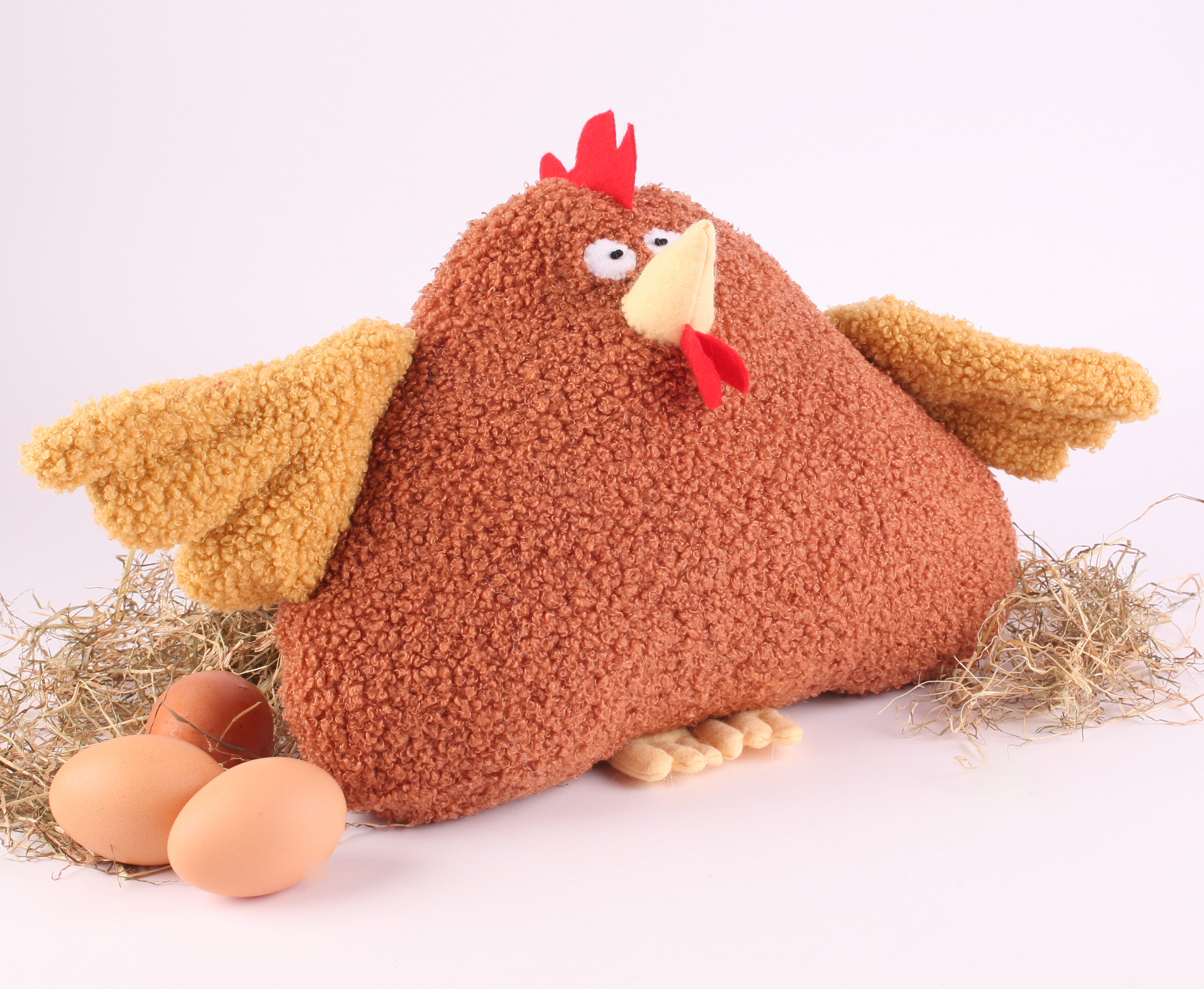 The Chumleys are a collection on fun, friendly characters, made from fleece which makes them soft and cuddly. Pullet is a sweet little hen with felt feet, eyes, beak, wattle and comb, each hand-stitched to the body. Although we’ve used Rust and Mustard teddy fleece, Pullet would also look cute made from bright or pastel coloured fleece!