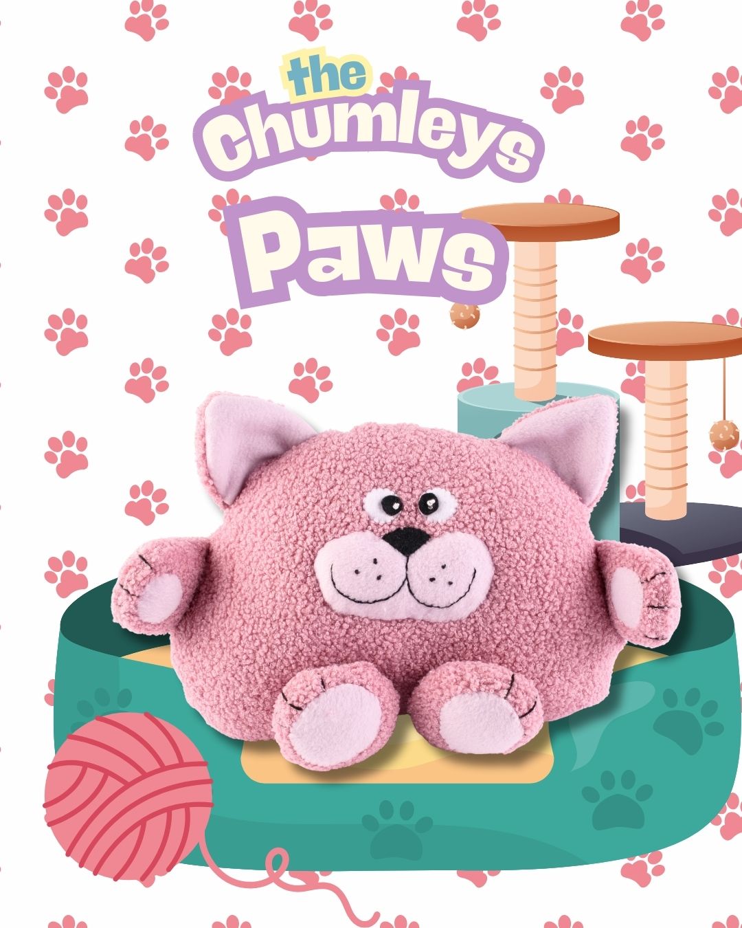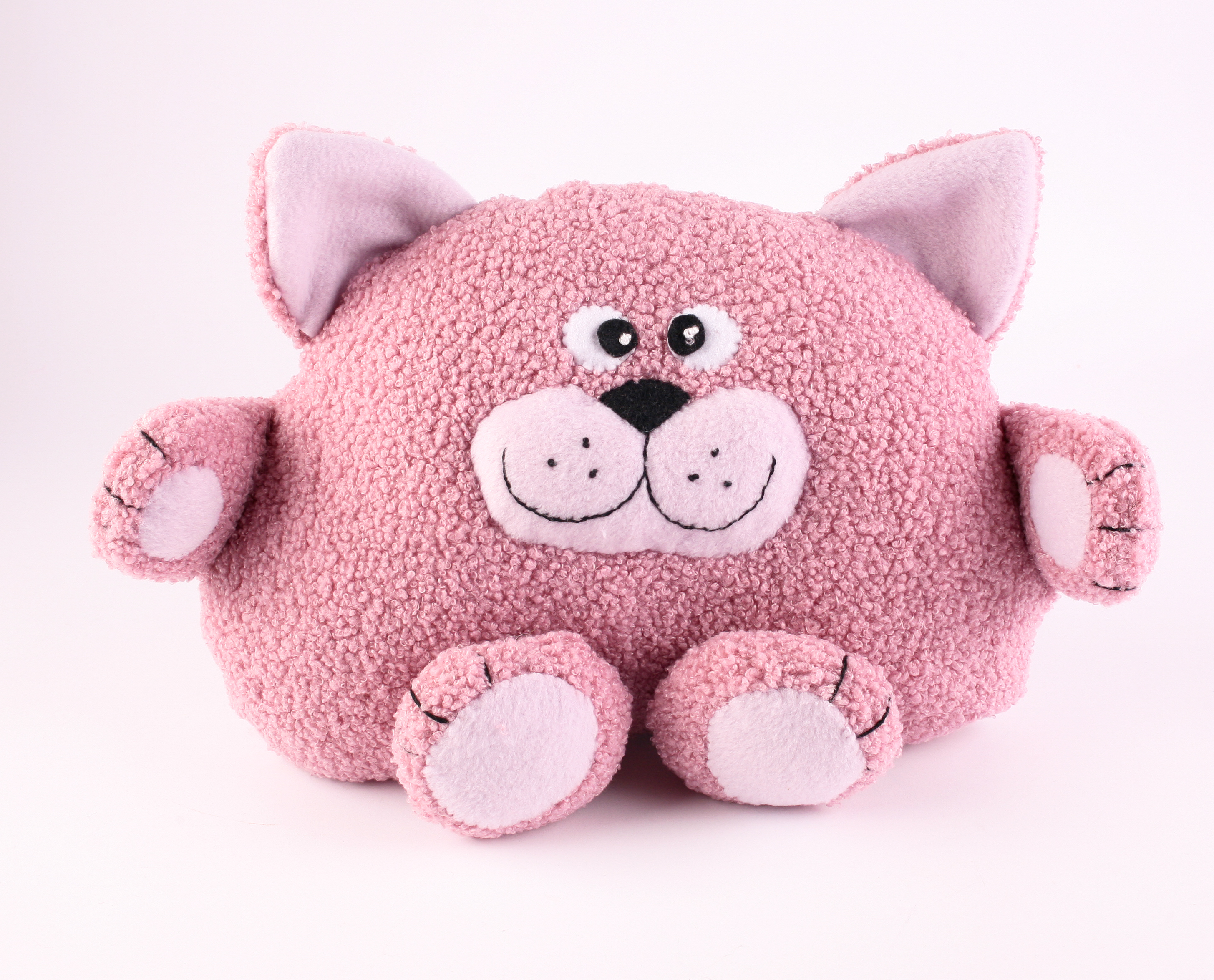 The Chumleys are a collection on fun, friendly characters, made from fleece which makes them soft and cuddly. Paws is a cuddly cat, with a happy smile and curly tail. Our Paws is made from pink teddy fleece, but why not make him into a tiger with striped fleece, or a spotty leopard!