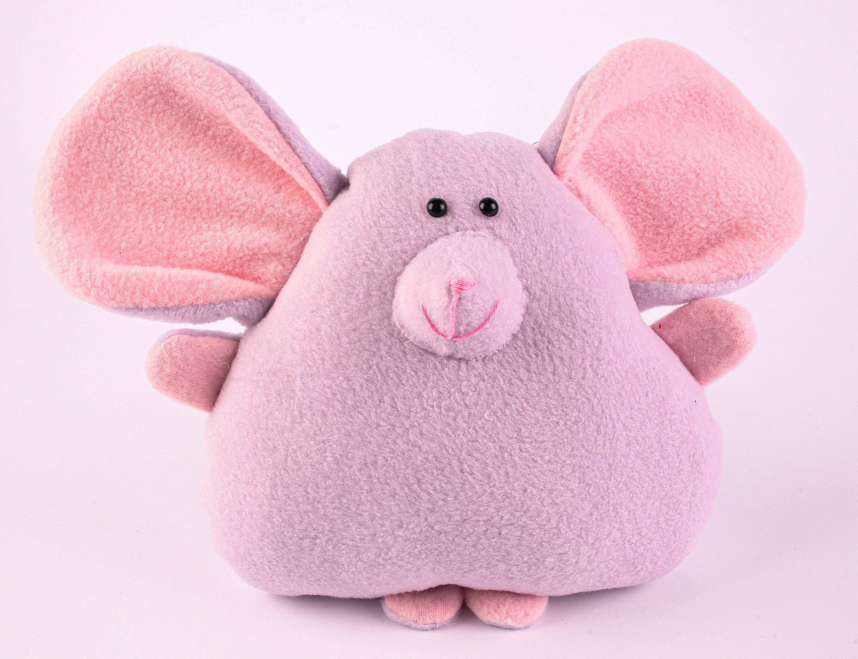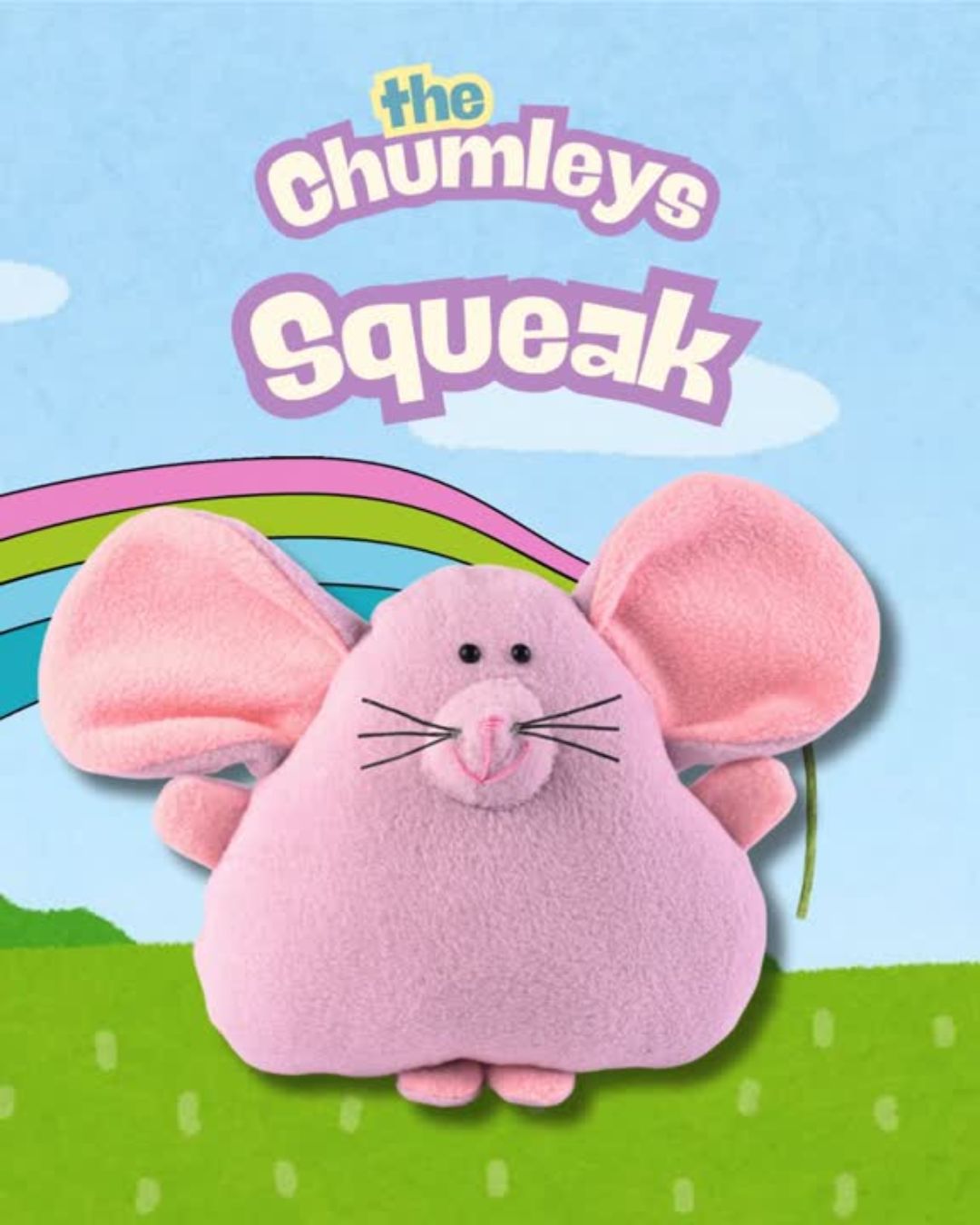 The Chumleys are a collection on fun, friendly characters, made from fleece which makes them soft and cuddly. Squeak is a happy little mouse, with beady eyes and cute whiskers. Our Squeak is made from lilac and pink polar fleece, but make yours in any colour you like!