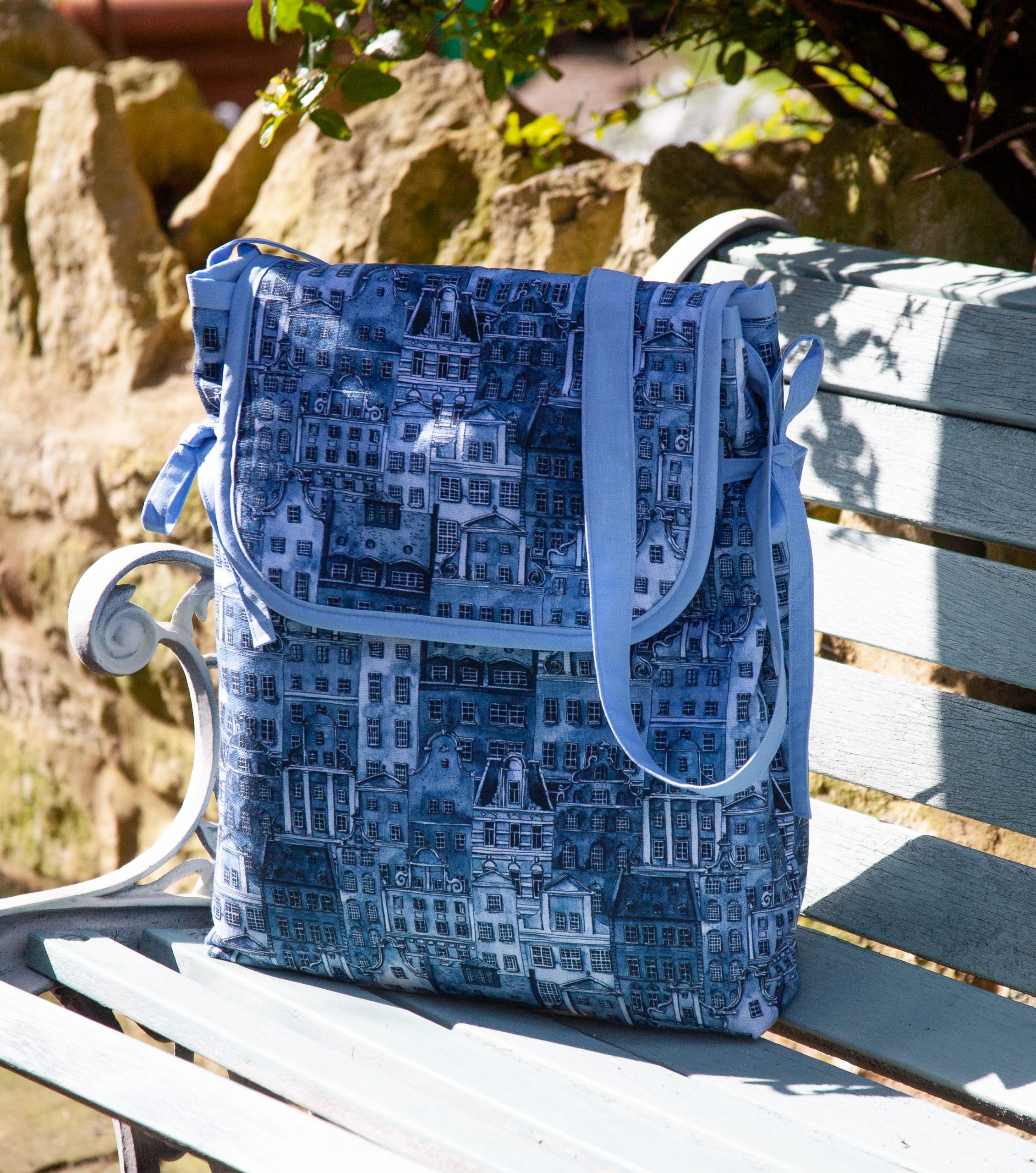 This large tote is perfect for work or weekends away! The tie sides expand the bag to give you plenty of room. There is a patch pocket inside the bag and it closes with a magnetic snap.