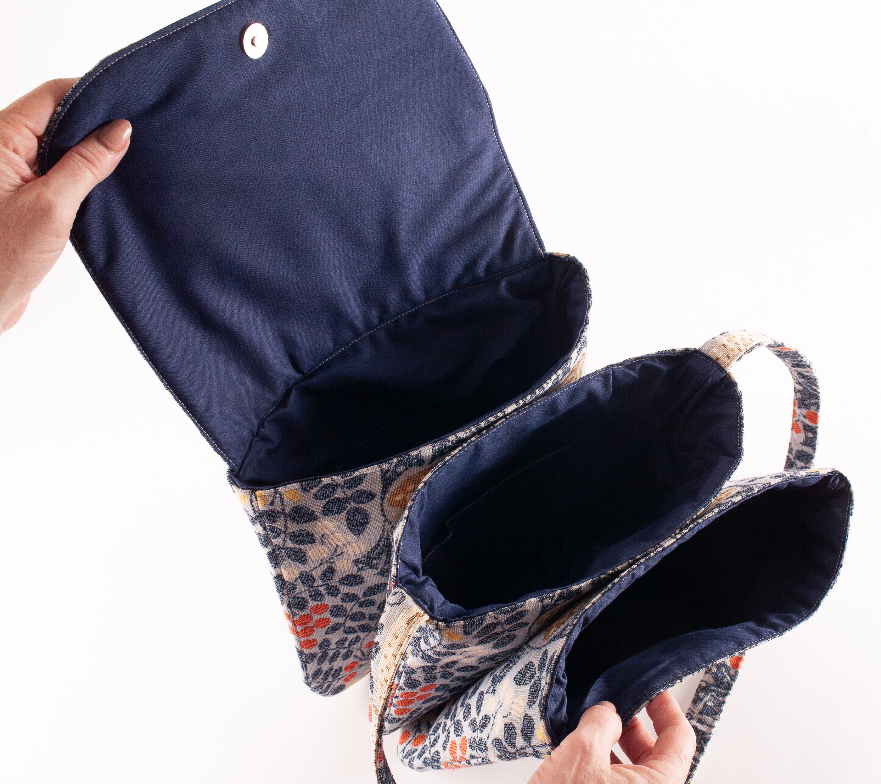 Three large pockets with three inside patch pockets make this bag a great one for organising! Whether it’s for work, travel, or an every day bag, it’s fun to make and stylish to wear.