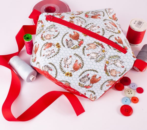 This unique and spacious pouch is ideal for storing cosmetics or small sewing items. The term “biscornu” in French translates to ‘quirky’ or ‘unusual,’ which perfectly captures the essence of this distinctive zipped bag!
