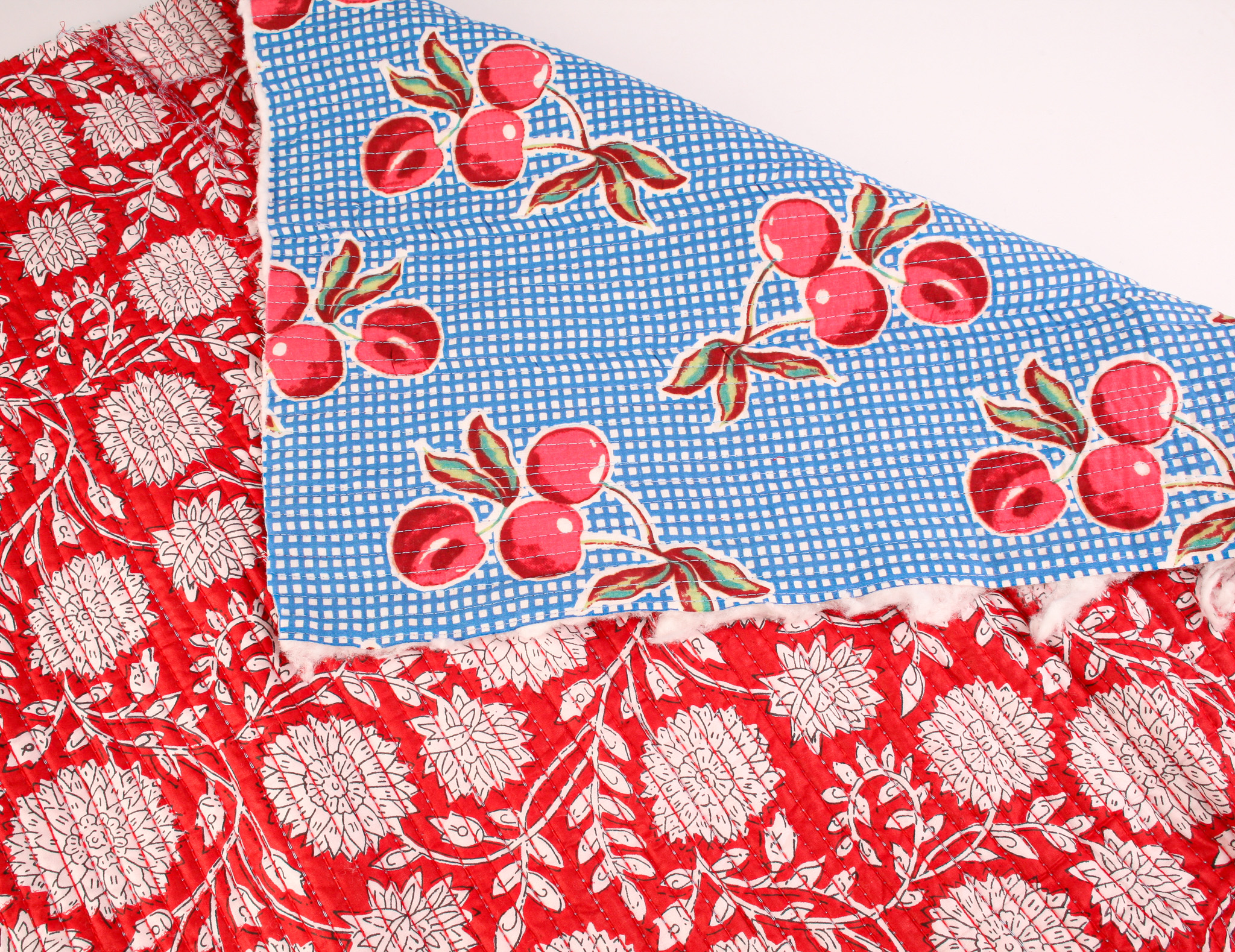 Exclusive Quilted Indian Block Print Cotton – Cherry Check