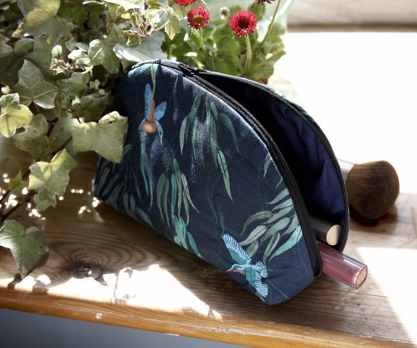 This half moon shaped bag is perfect for keeping your makeup, cosmetics or even stationary organised. It is fully lined with a zip to close.