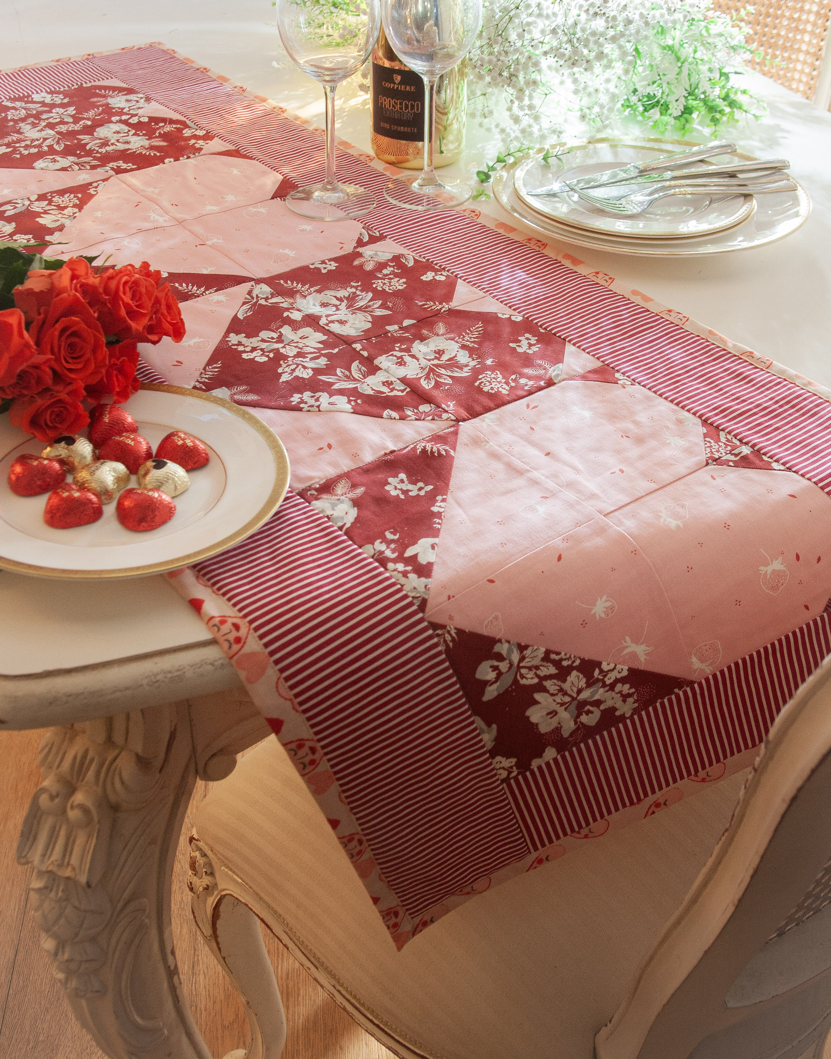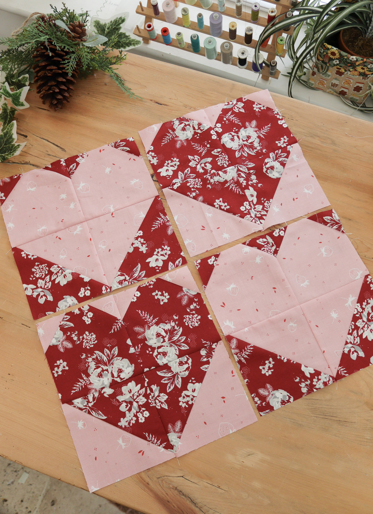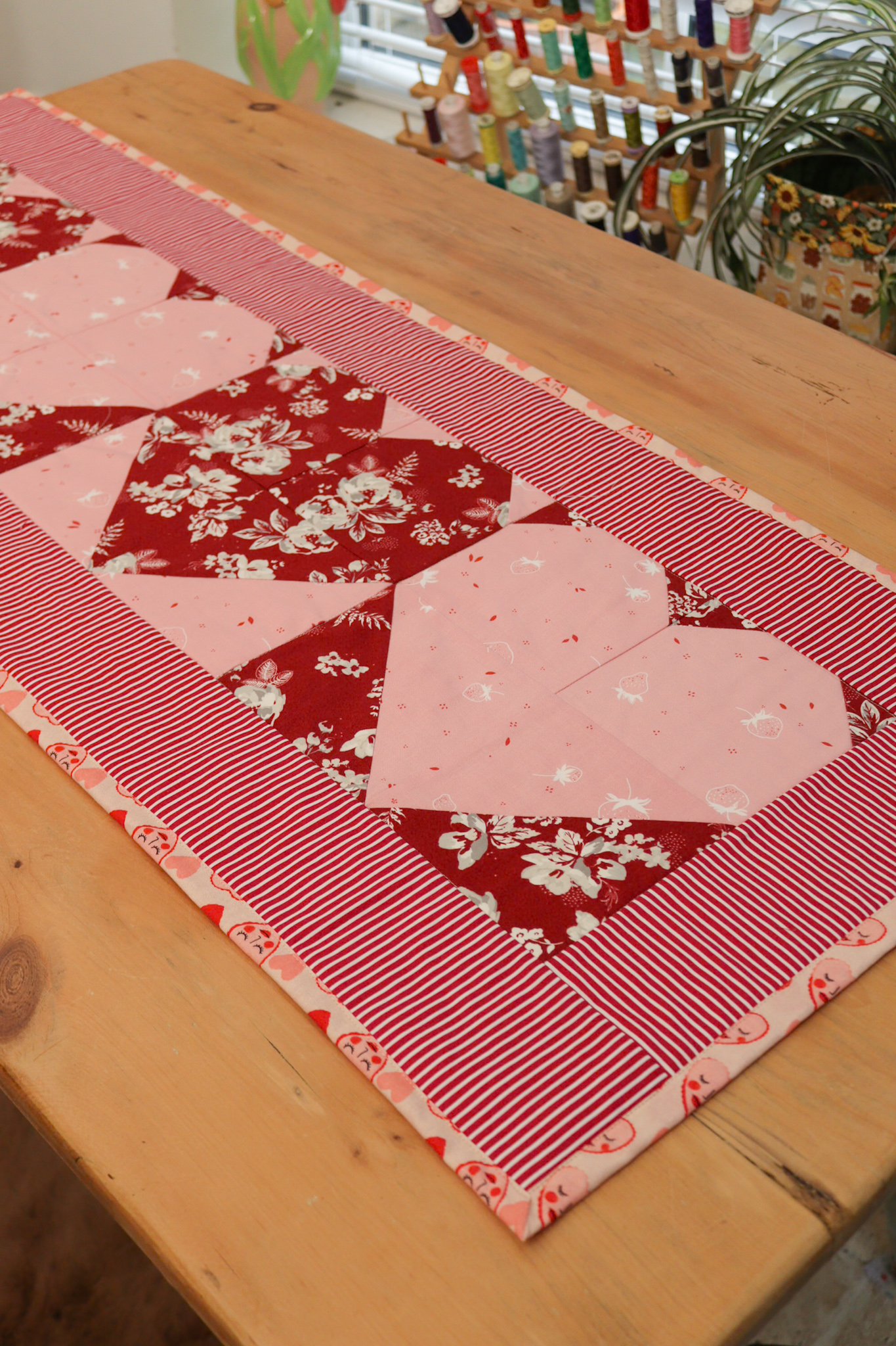 Inside the PDF, you’ll learn how to sew half square triangles and snowballed corners to form a heart block, alternate colours for balance, and how to finish your table runner with self binding using the backing fabric. The techniques used in this project are easy to adapt, making the heart block suitable for quilts, cushions, placemats, and other small sewing projects.